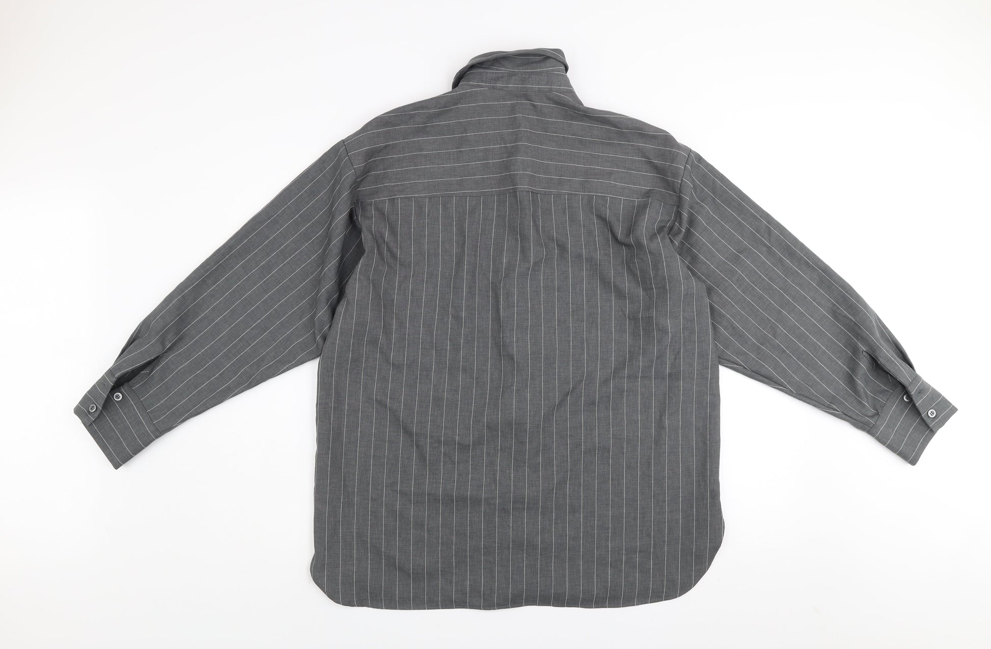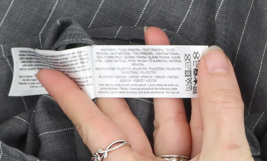 Primark Women's Grey Pinstripe Button-Up Shirt Size S Polyester Blend
