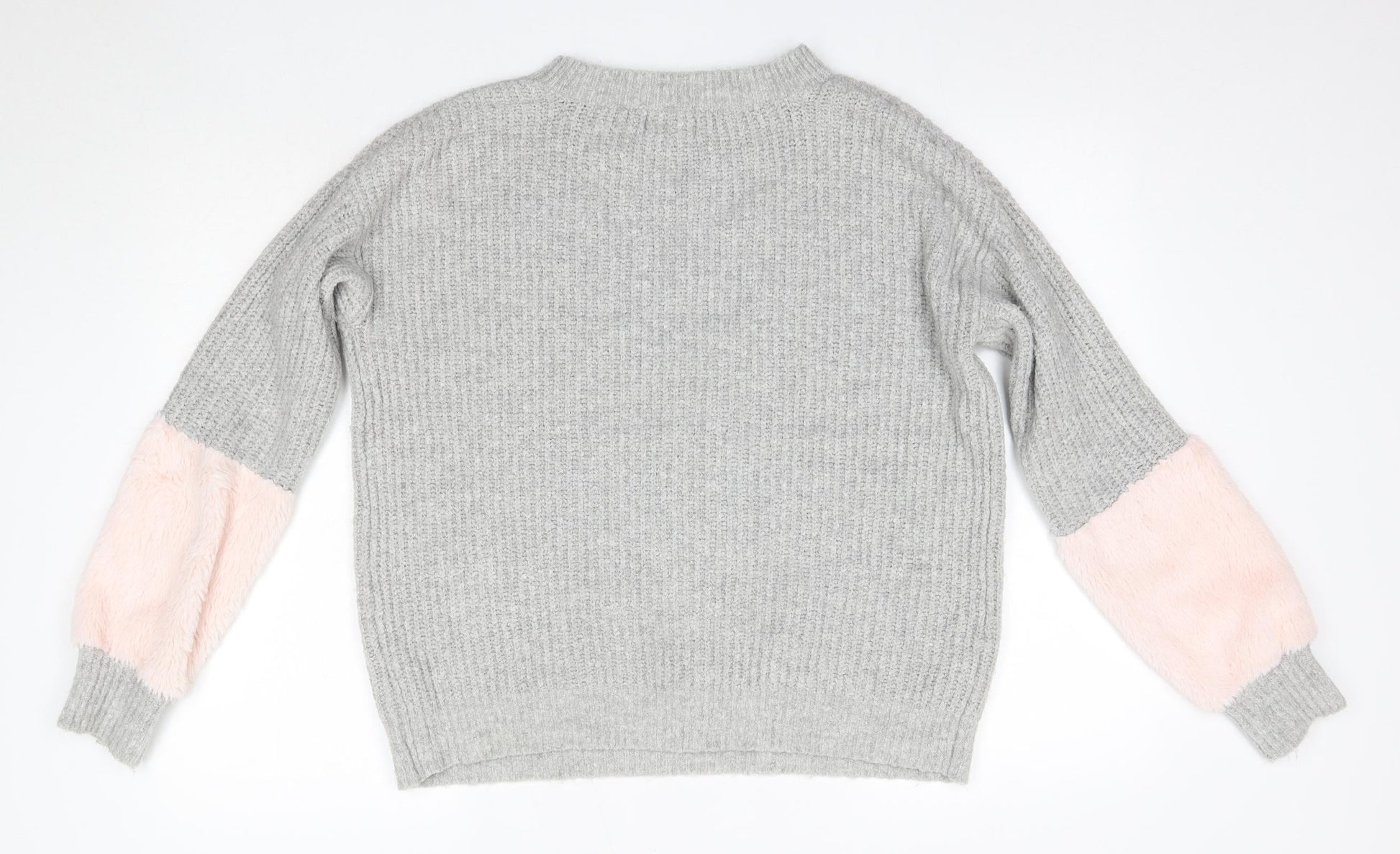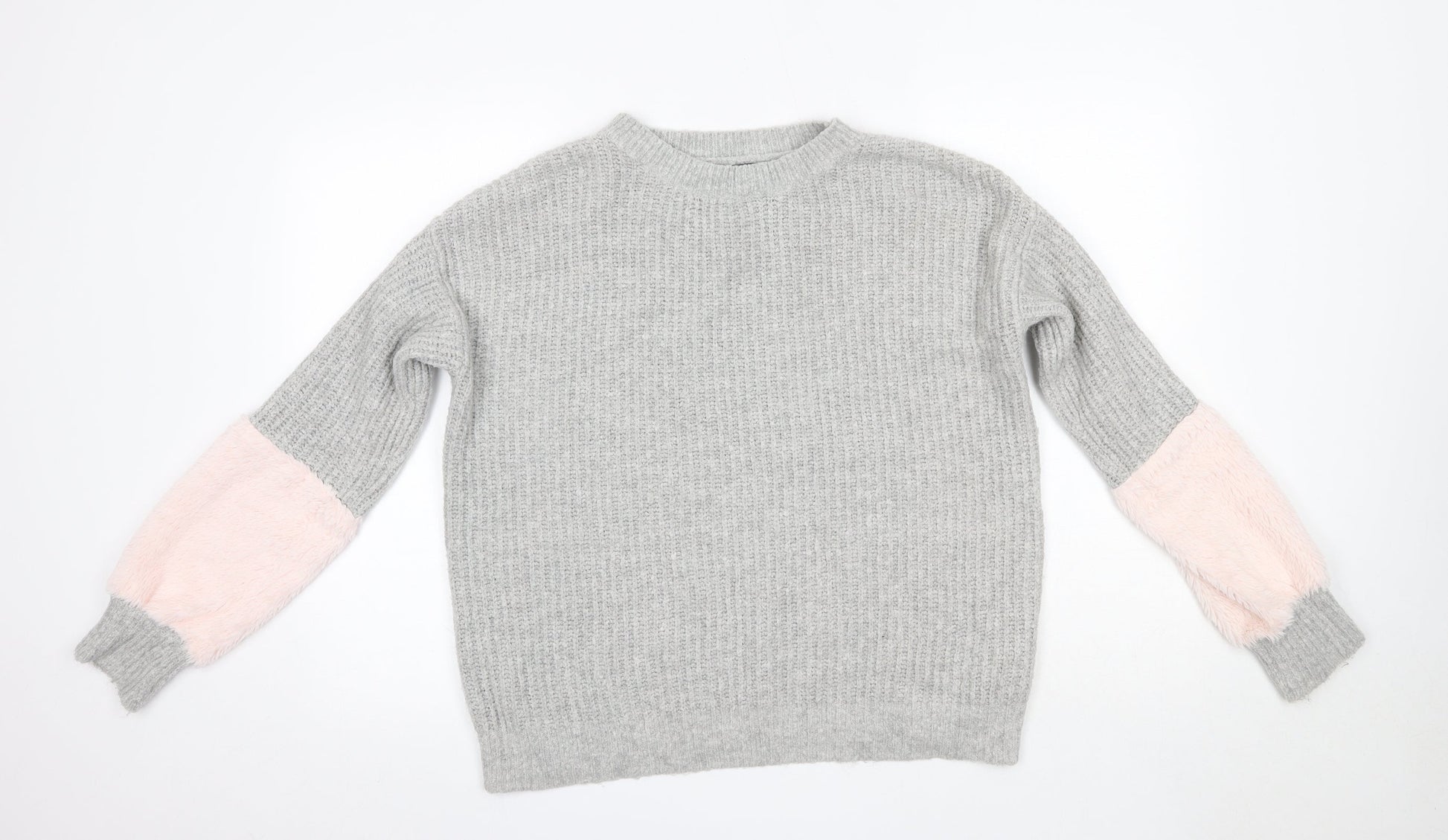 Primark Womens Grey Round Neck Acrylic Pullover Jumper Size M