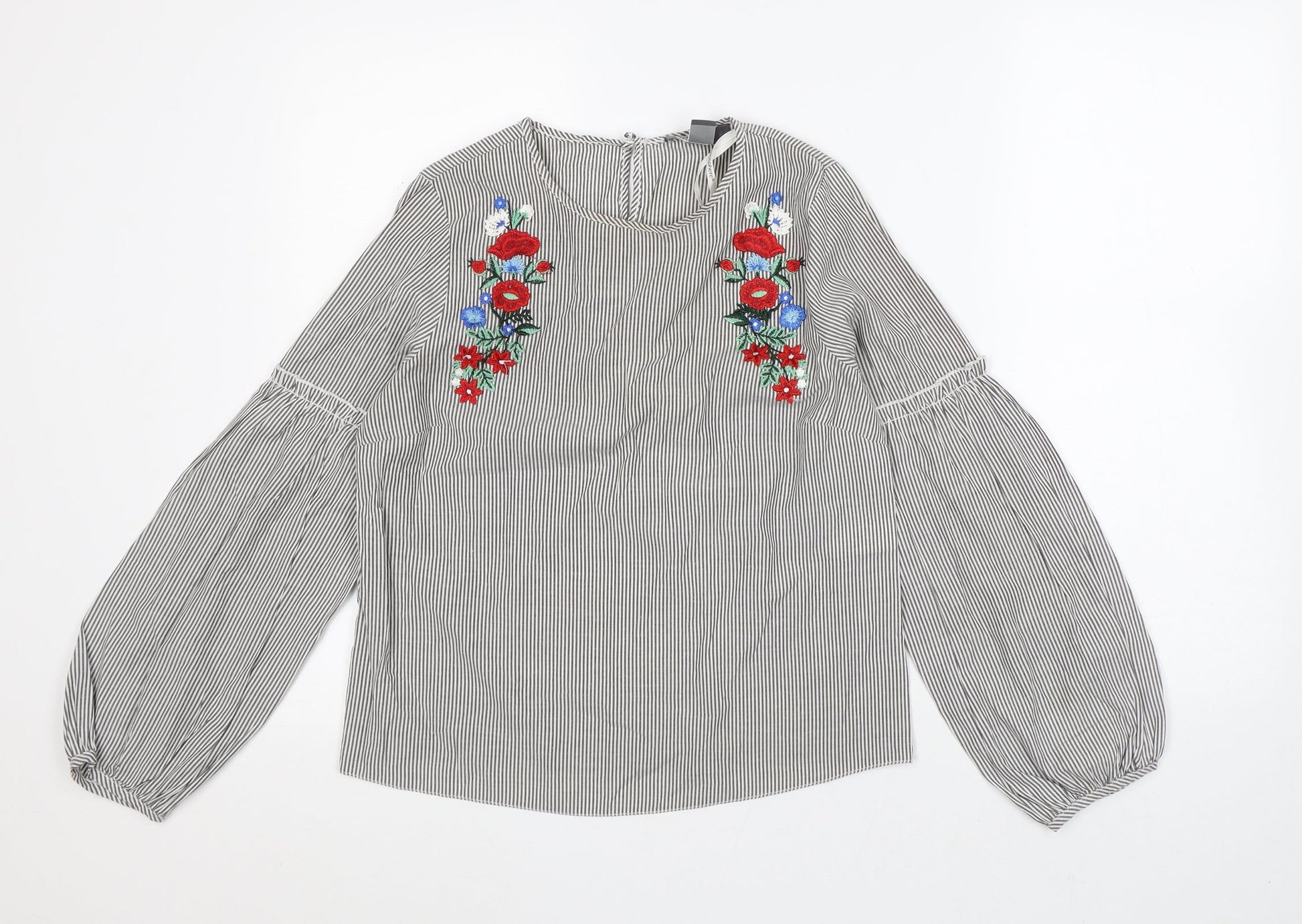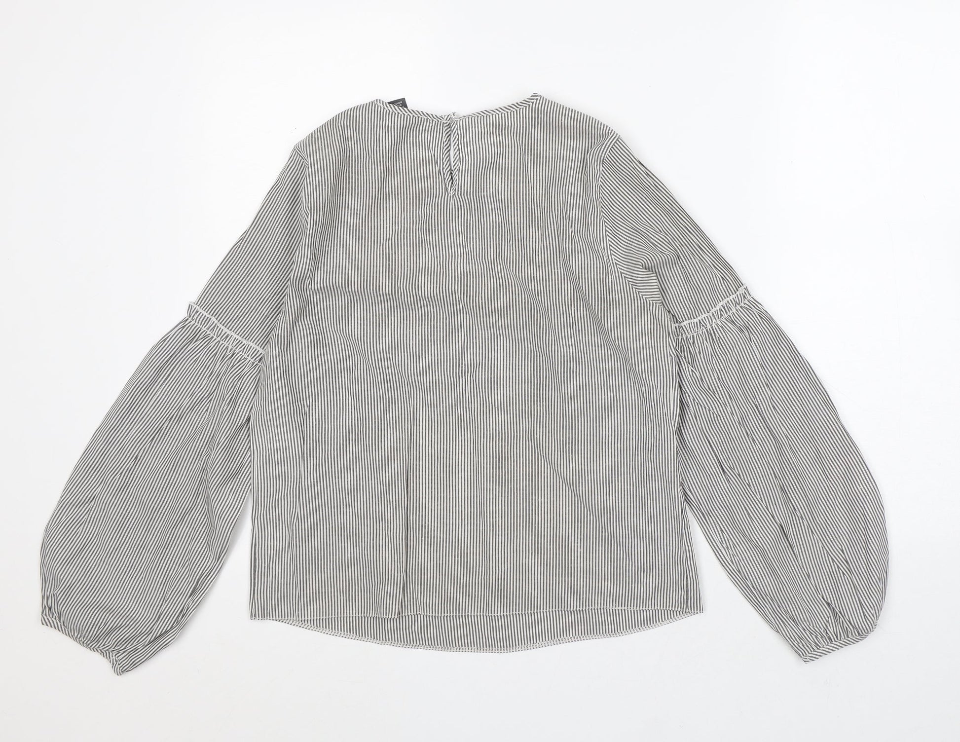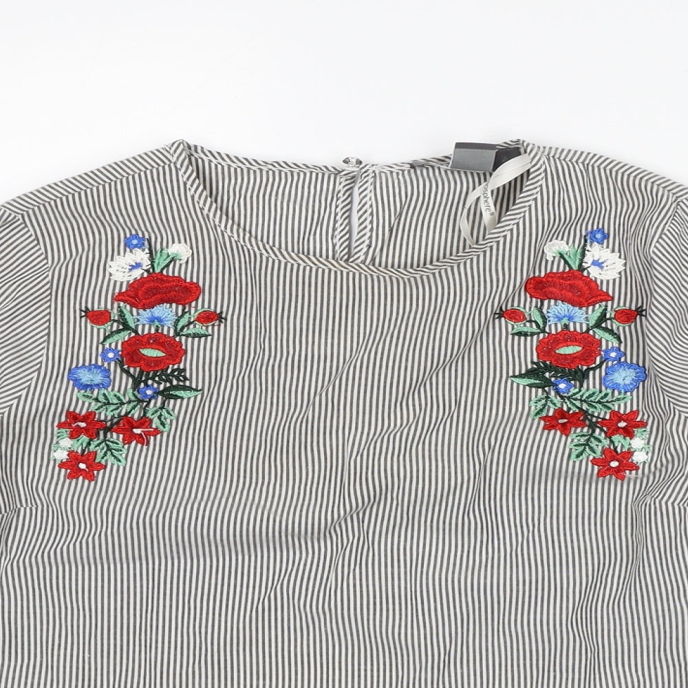 Primark Womens Grey Striped Polyester Tunic Blouse Size 8 Round Neck