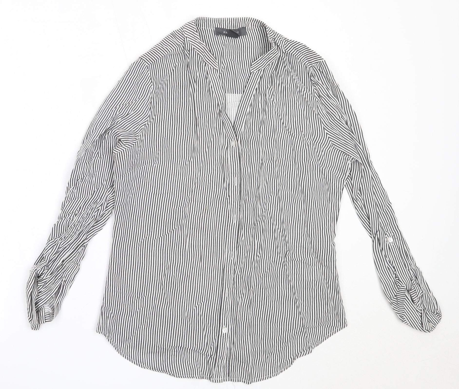 Primark Womens Grey Striped Viscose Basic Button-Up Size 10 V-Neck