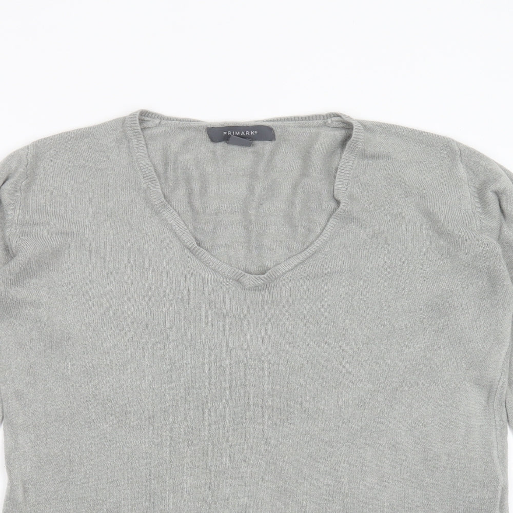 Primark Womens Grey V-Neck Acrylic Pullover Jumper Size S