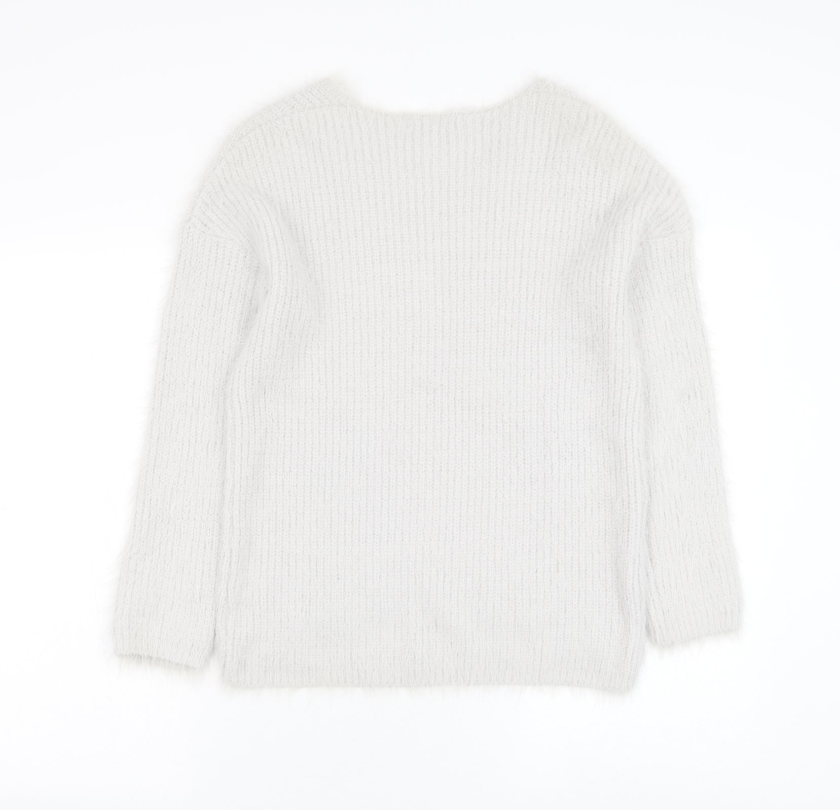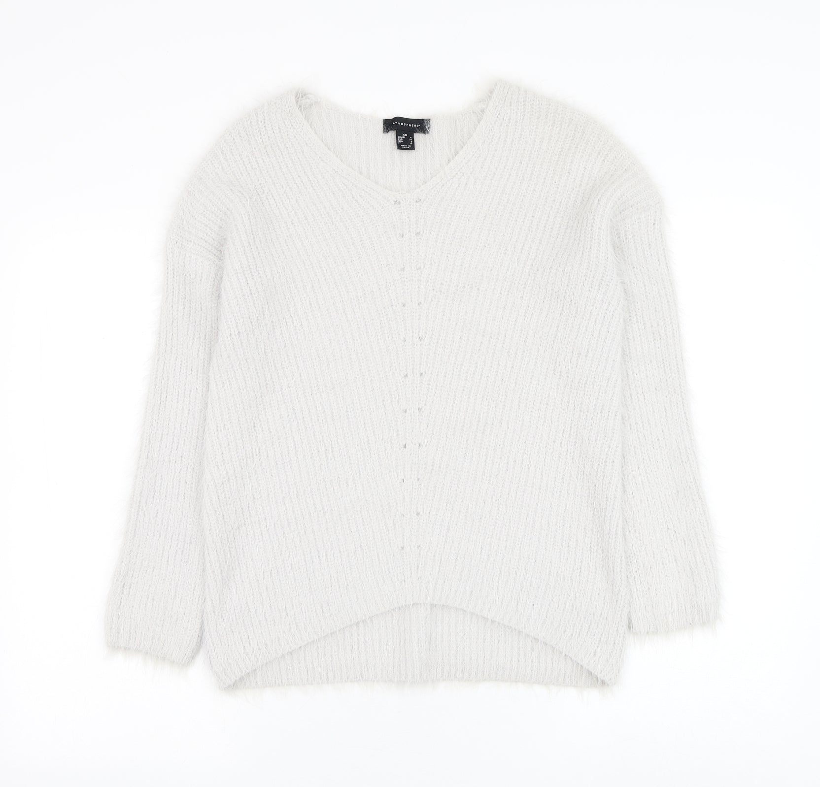 Primark Womens Grey V-Neck Nylon Pullover Jumper Size 4