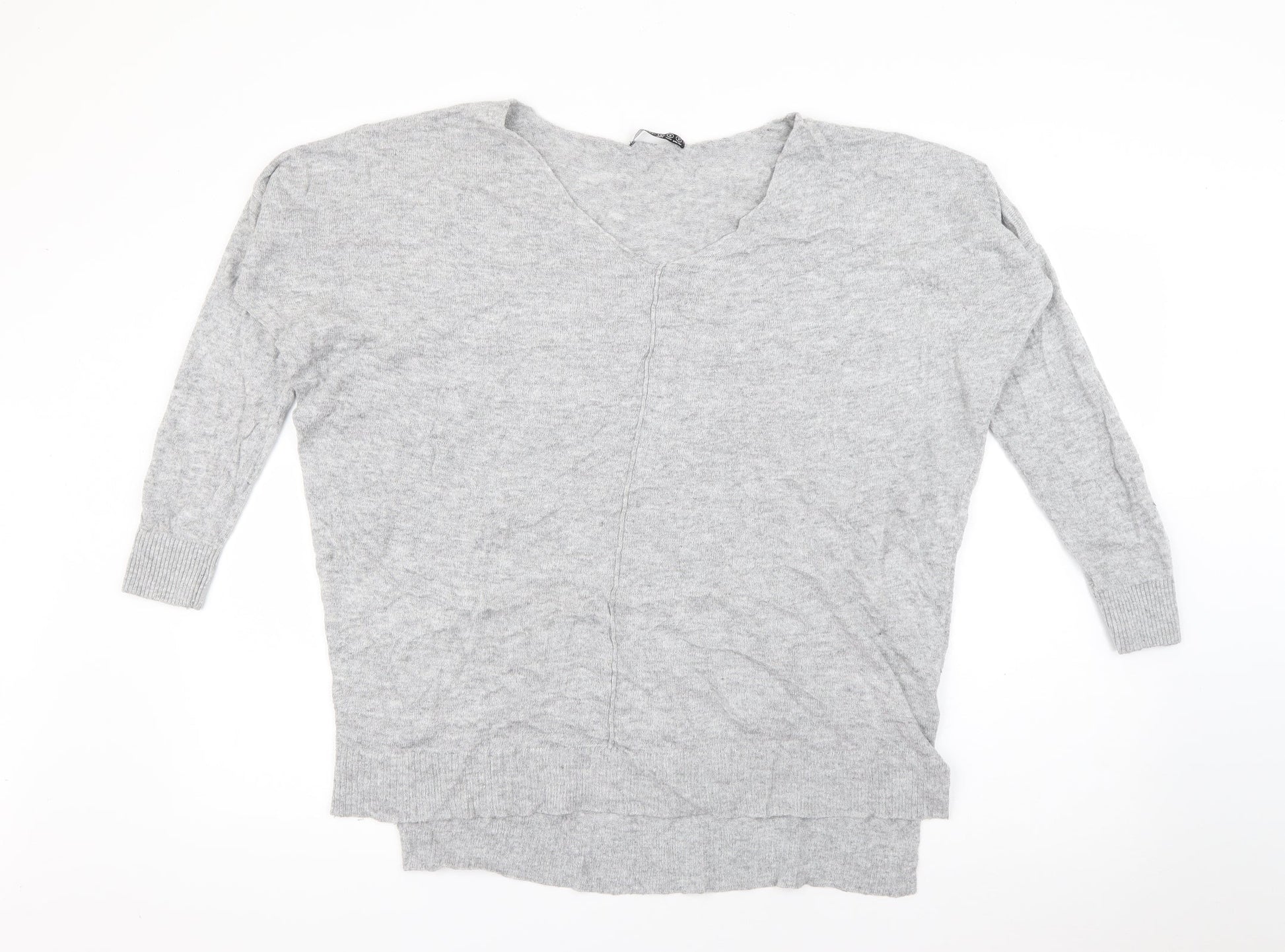 Primark Womens Grey V-Neck Viscose Pullover Jumper Size S