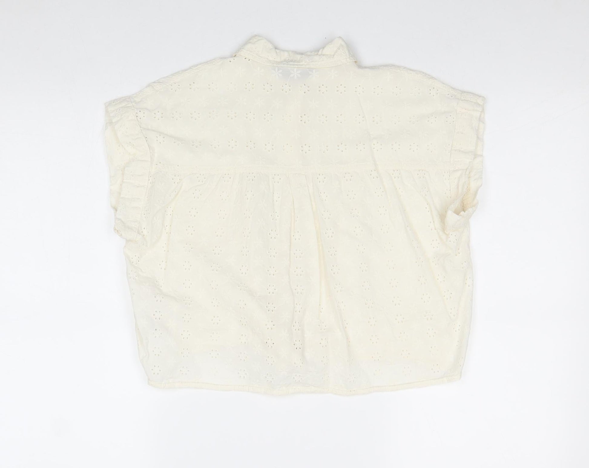 Primark Womens Ivory 100% Cotton Basic Button-Up Size 8 Collared - Tie Front Broderie Anglaise