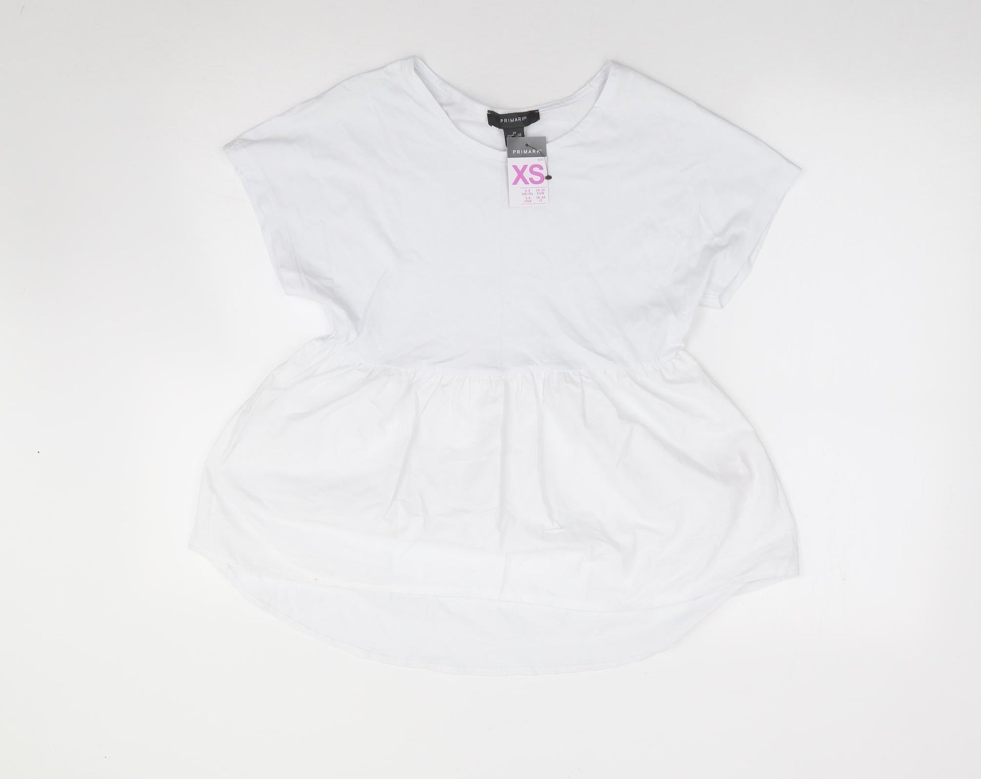 Primark Womens Ivory 100% Cotton Jersey T-Shirt Size XS Round Neck