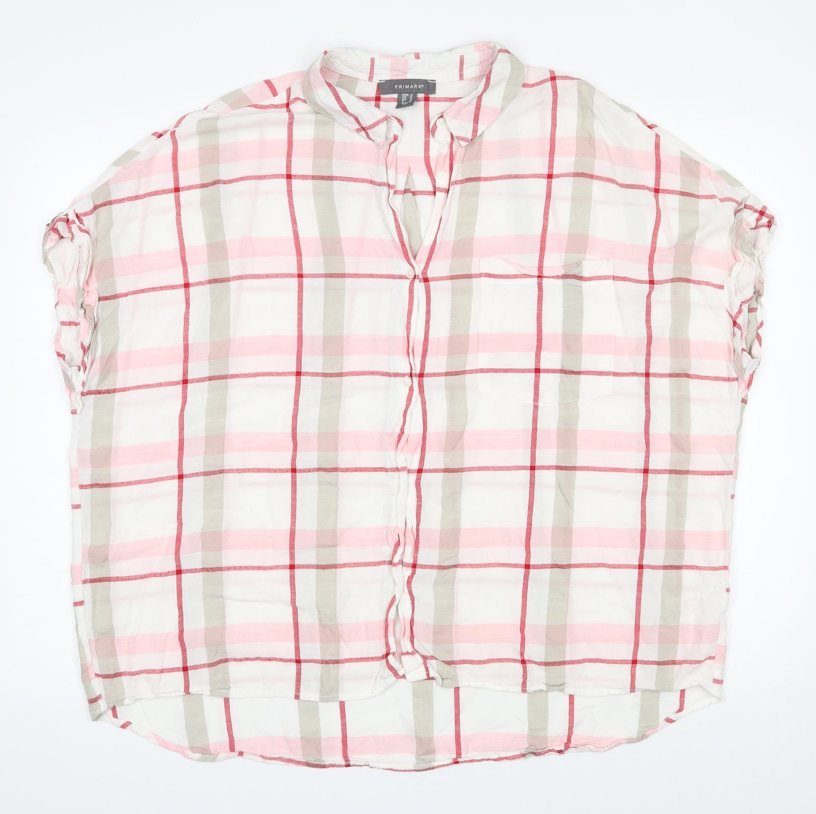 Primark Womens Ivory Check Viscose Basic Button-Up Size 14 Collared
