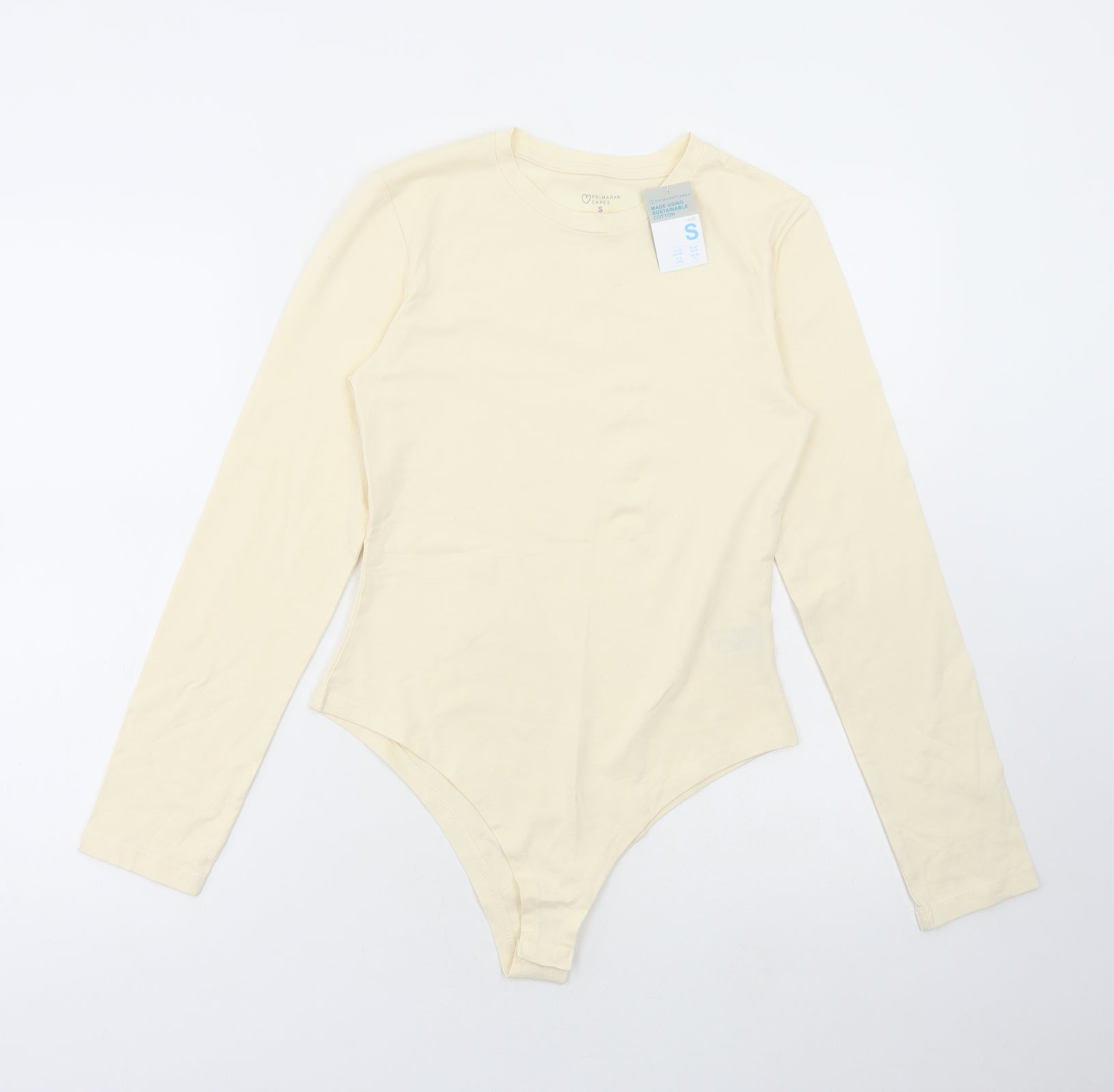 Primark Womens Ivory Cotton Bodysuit One-Piece Size S Snap