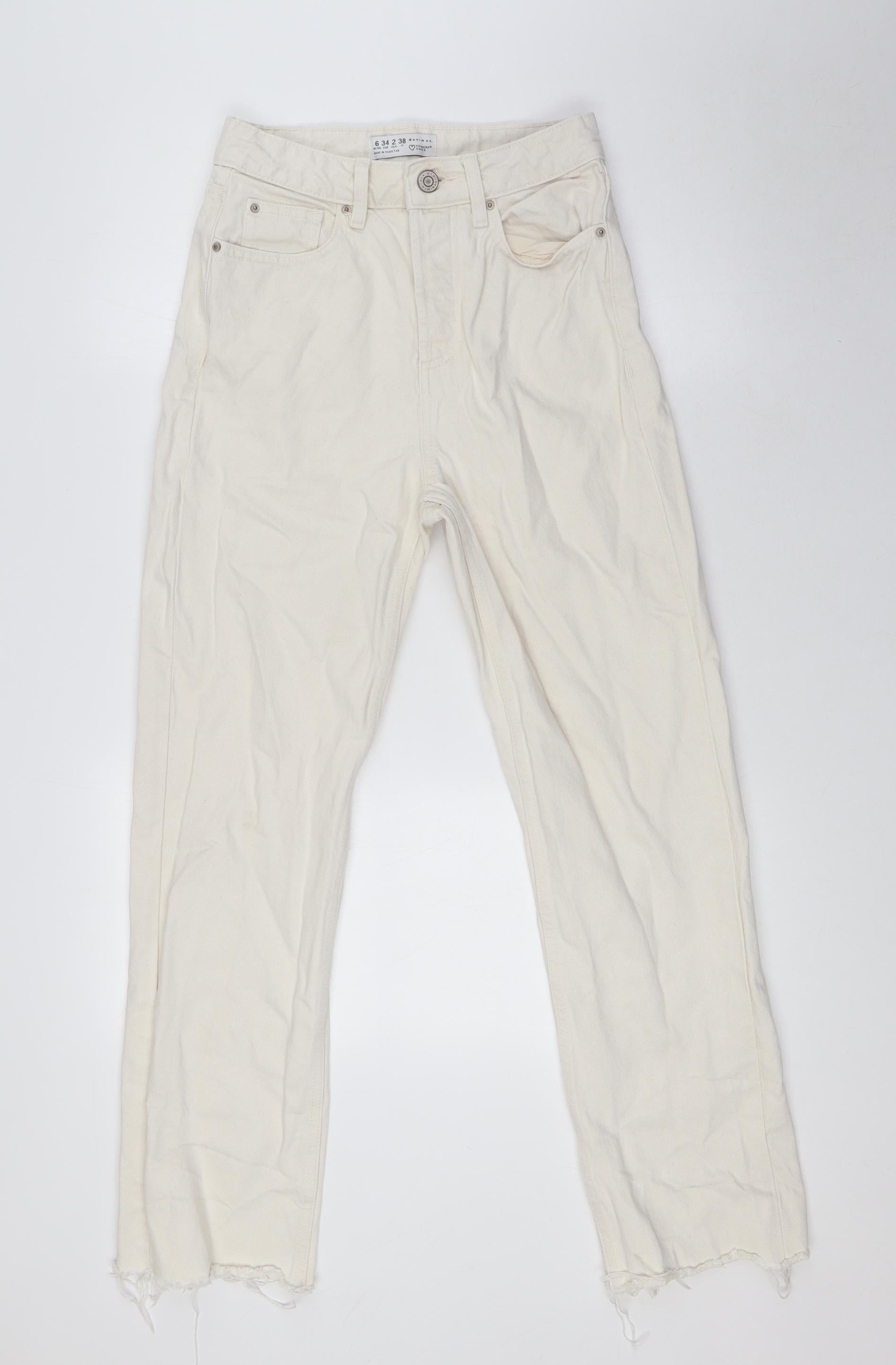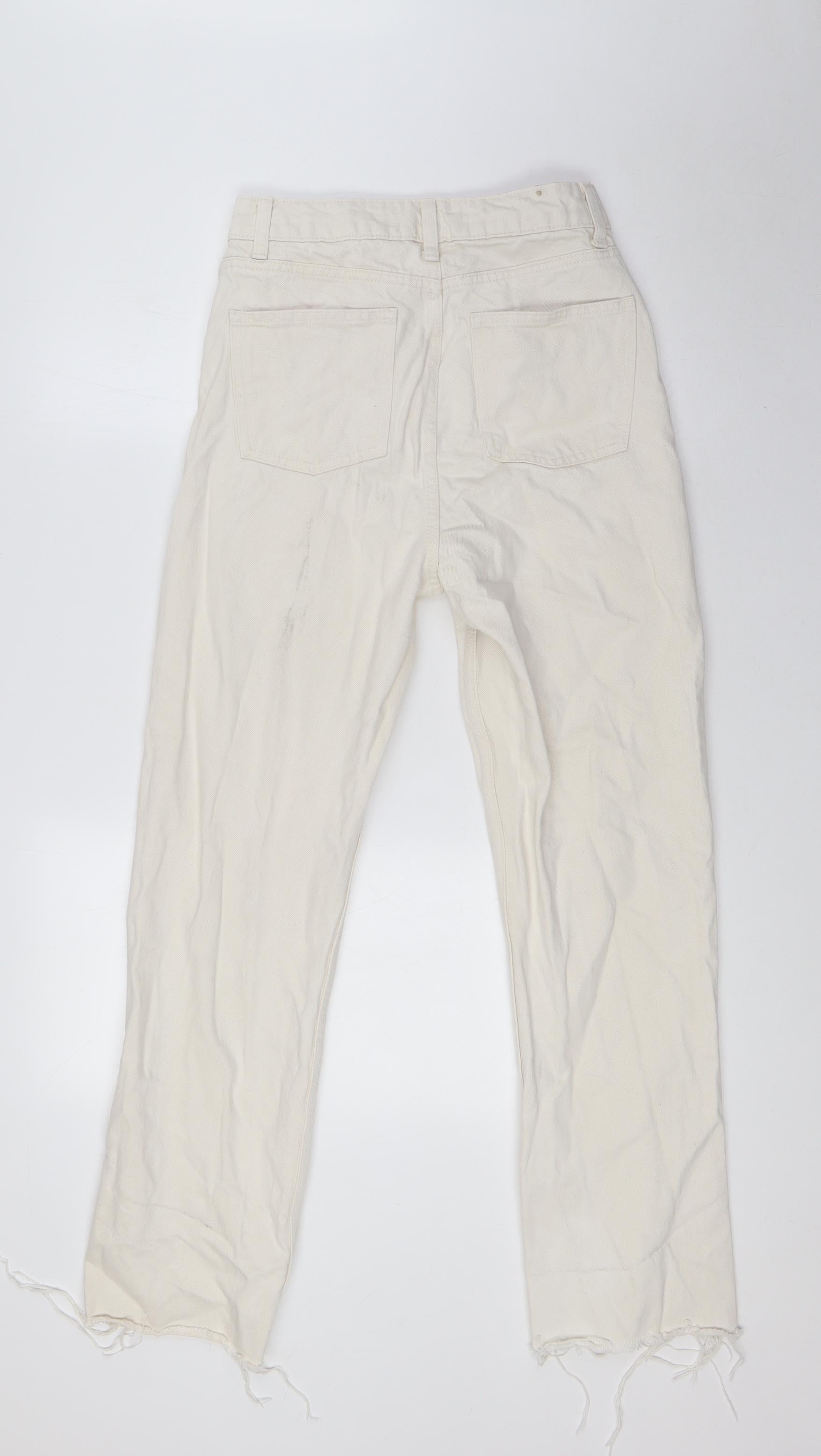Primark Womens Ivory Cotton Straight Jeans Size 6 L28 in Regular Button - Raw Hem