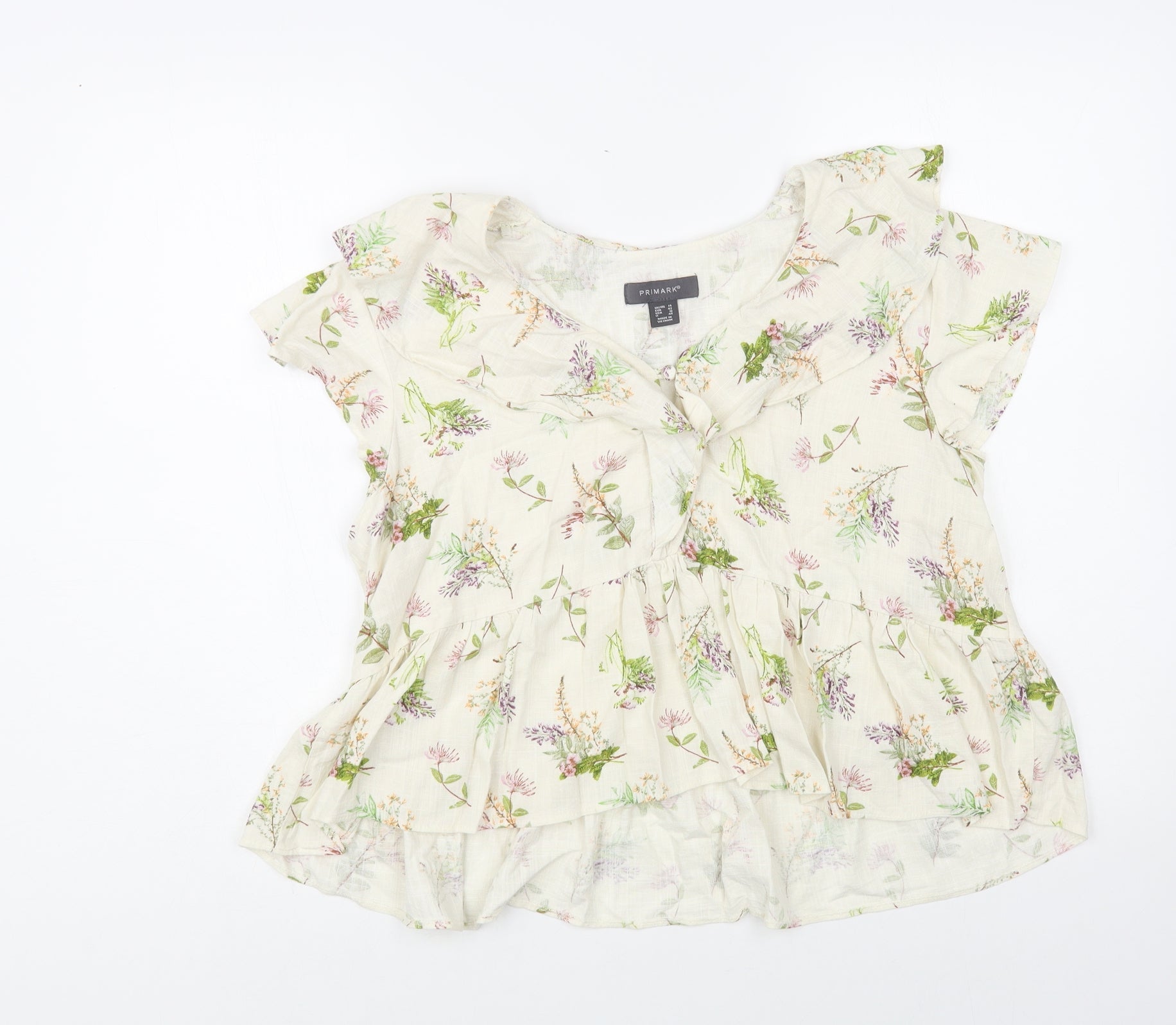 Primark Womens Ivory Floral Viscose Basic Button-Up Size 14 Collared