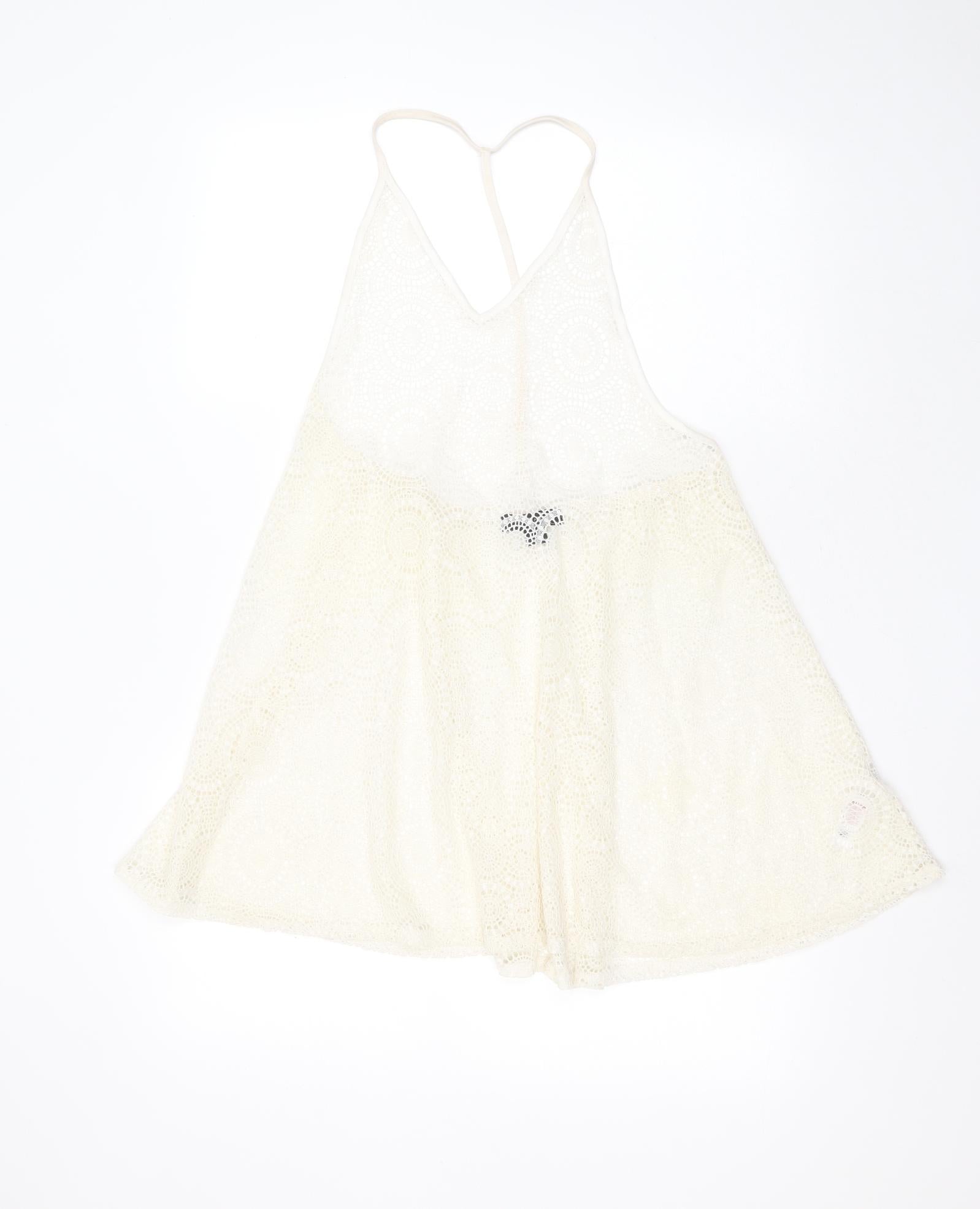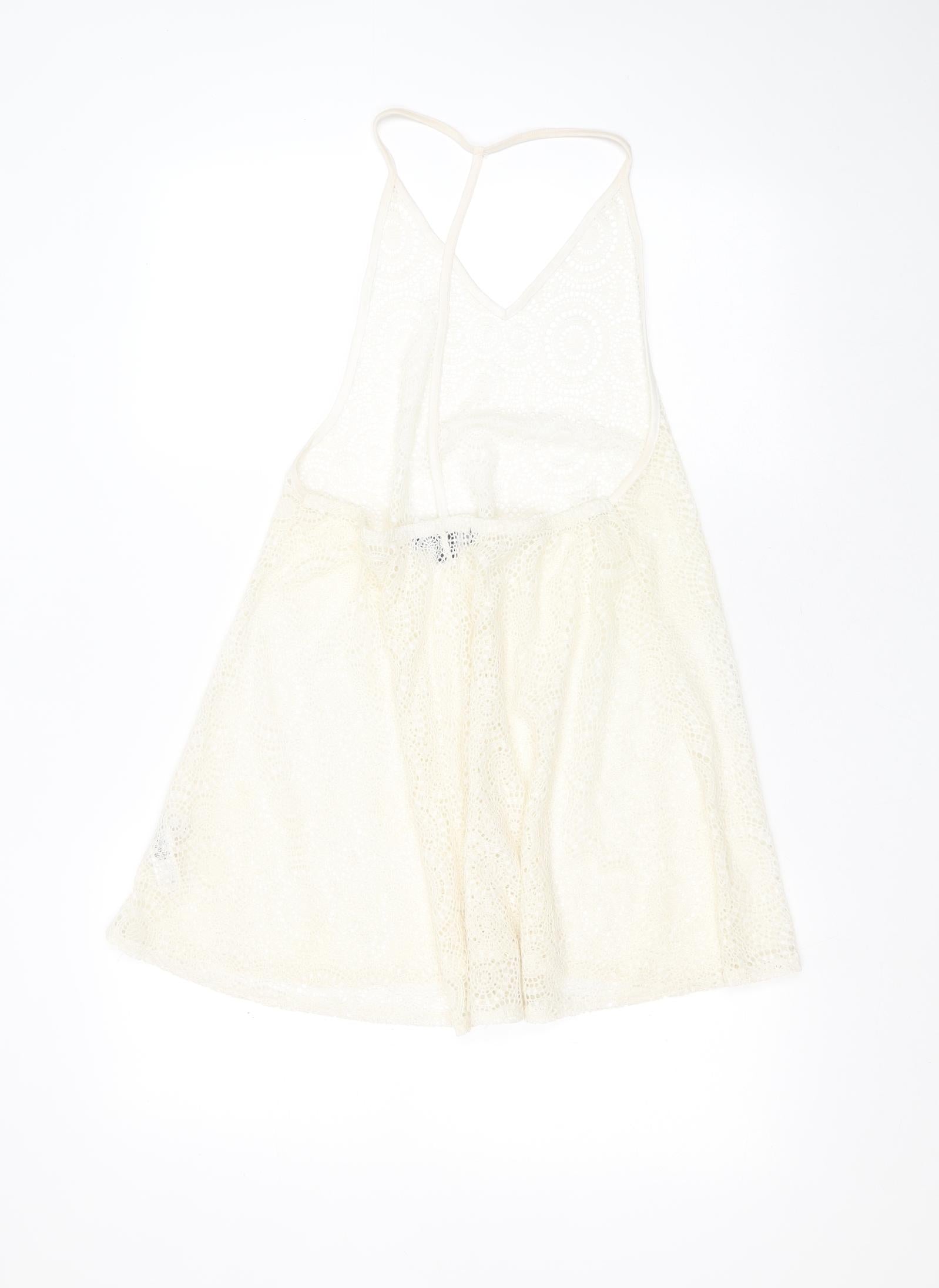 Primark Womens Ivory Geometric Nylon Basic Blouse Size S V-Neck - sheer crochet