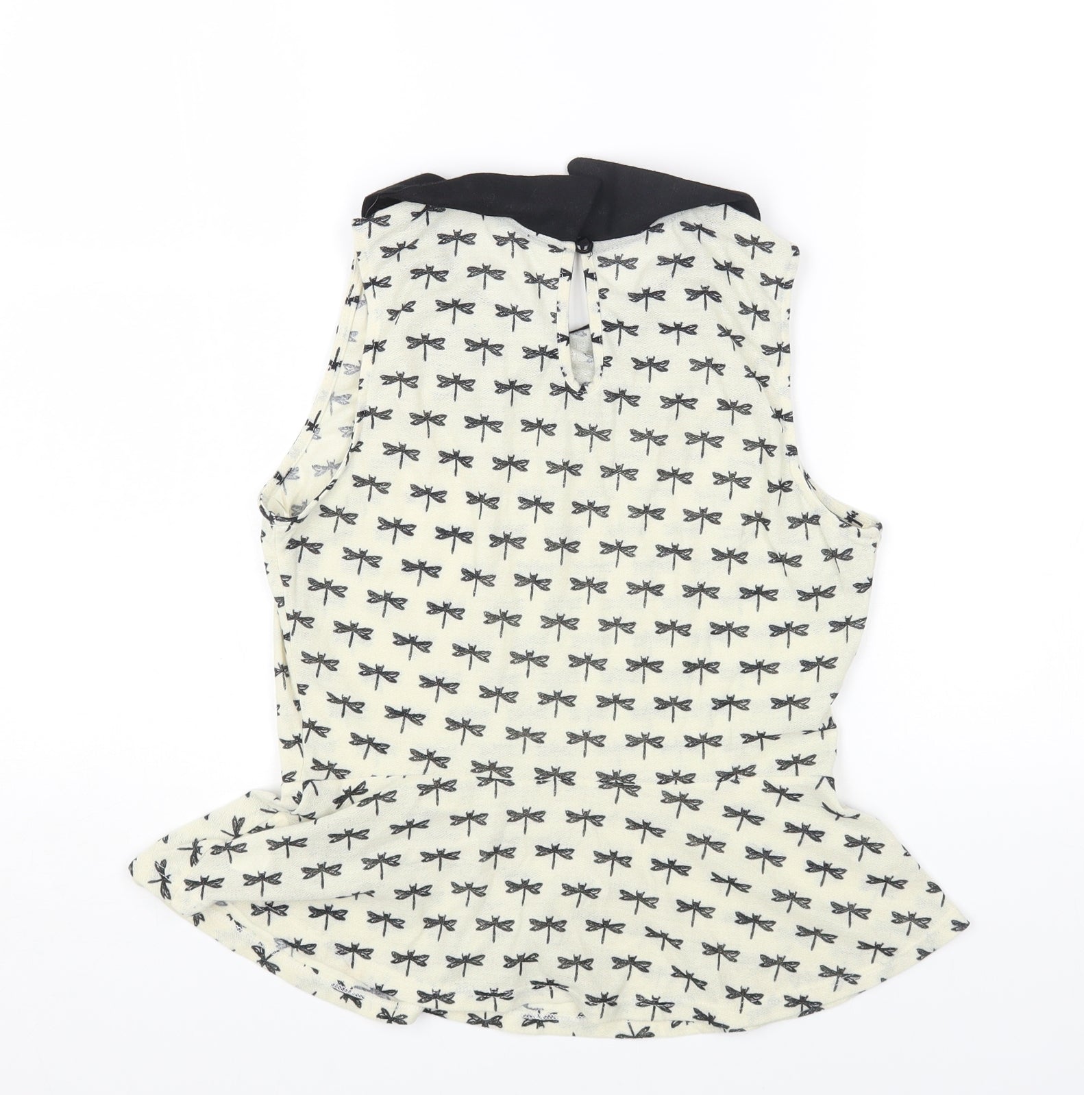 Primark Womens Ivory Geometric Polyester Basic Blouse Size 10 Collared - Dragonfly Print