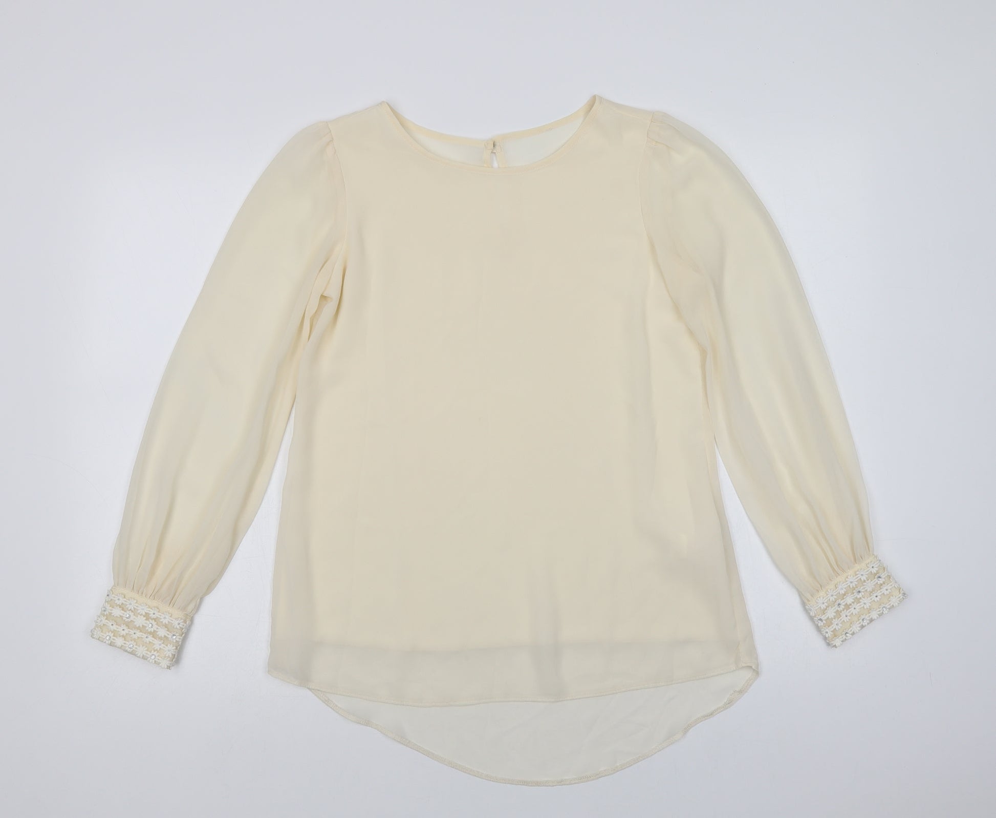 Primark Womens Ivory Polyester Basic Blouse Size 8 Crew Neck - Embellished Cuffs