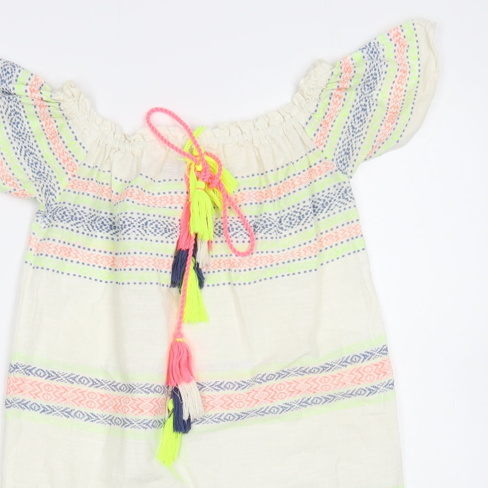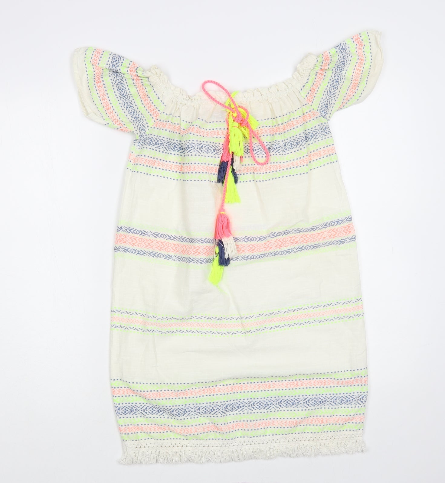 Primark Womens Ivory Striped Cotton Tunic Blouse Size 4 Off the Shoulder