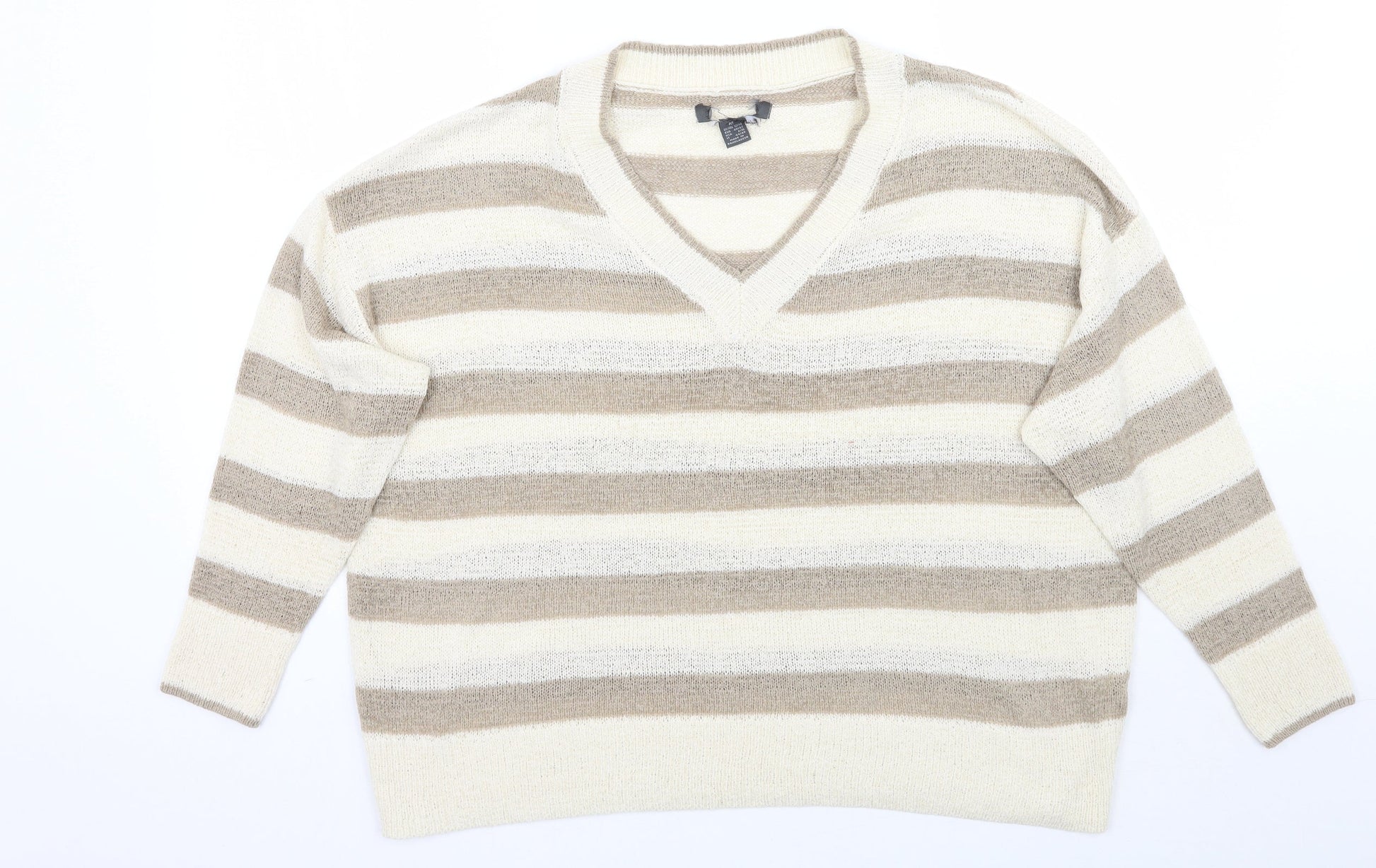Primark Womens Ivory Striped Pullover Jumper Size 14