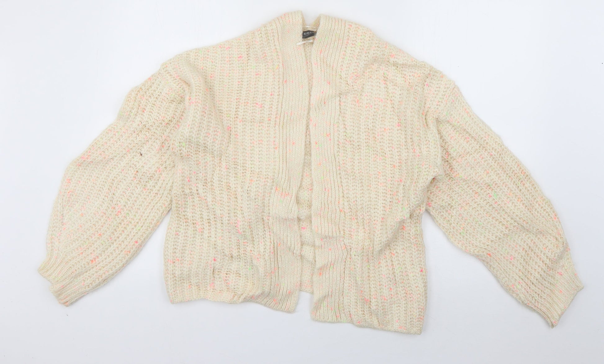 Primark Womens Ivory V-Neck Acrylic Cardigan Jumper Size 10