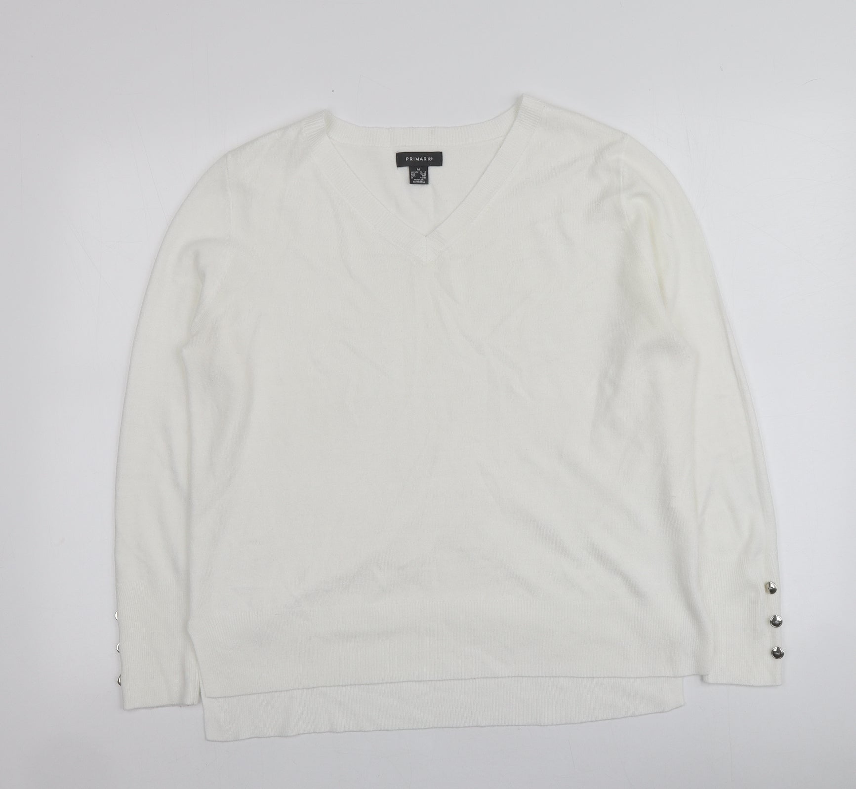 Primark Womens Ivory V-Neck Acrylic Pullover Jumper Size M