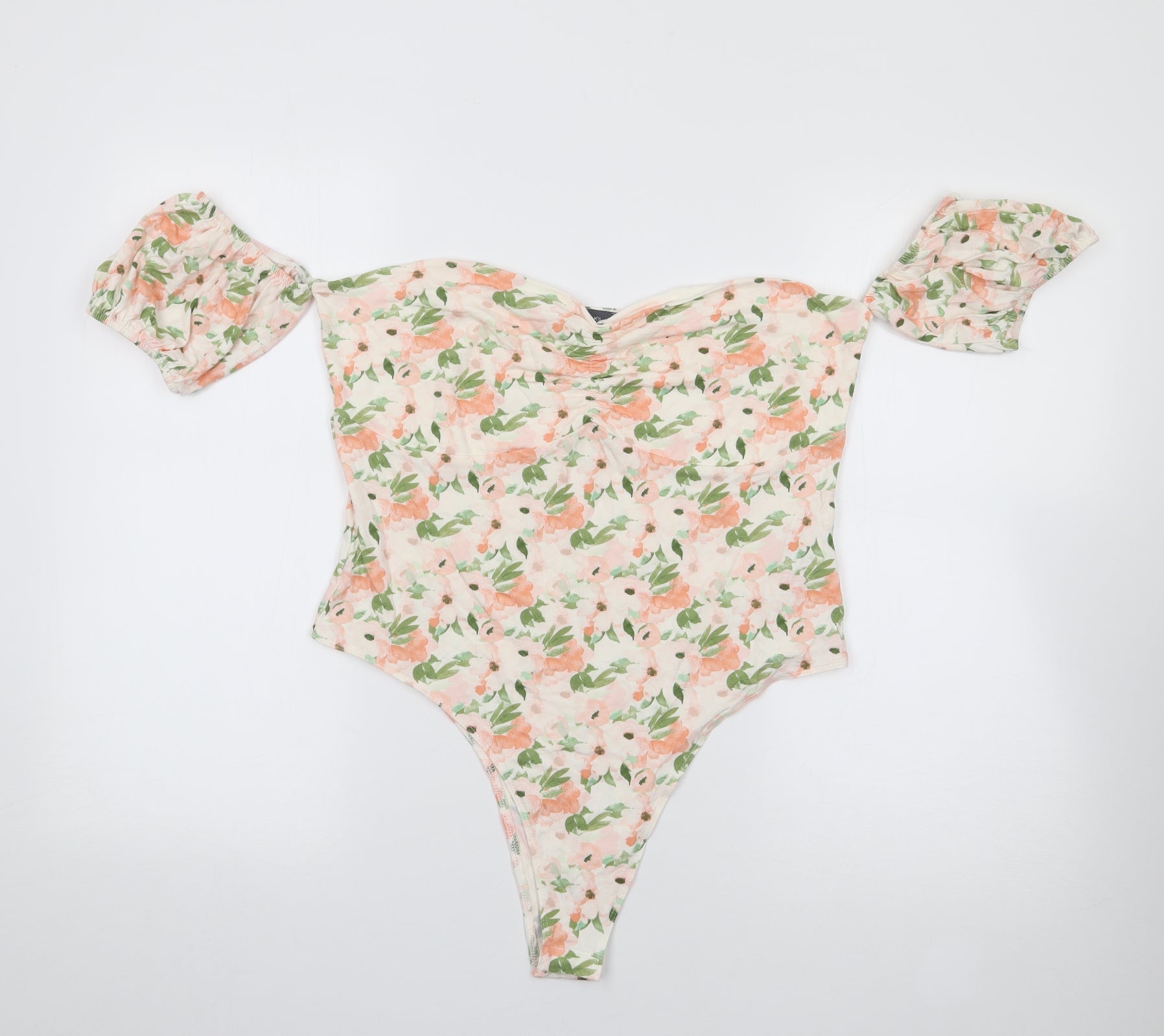 Primark Womens Multicoloured Floral Viscose Bodysuit One-Piece Size L Snap