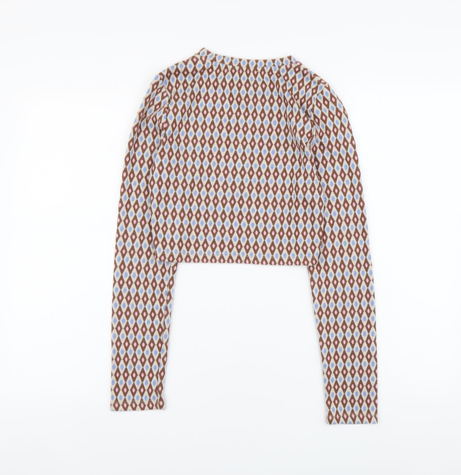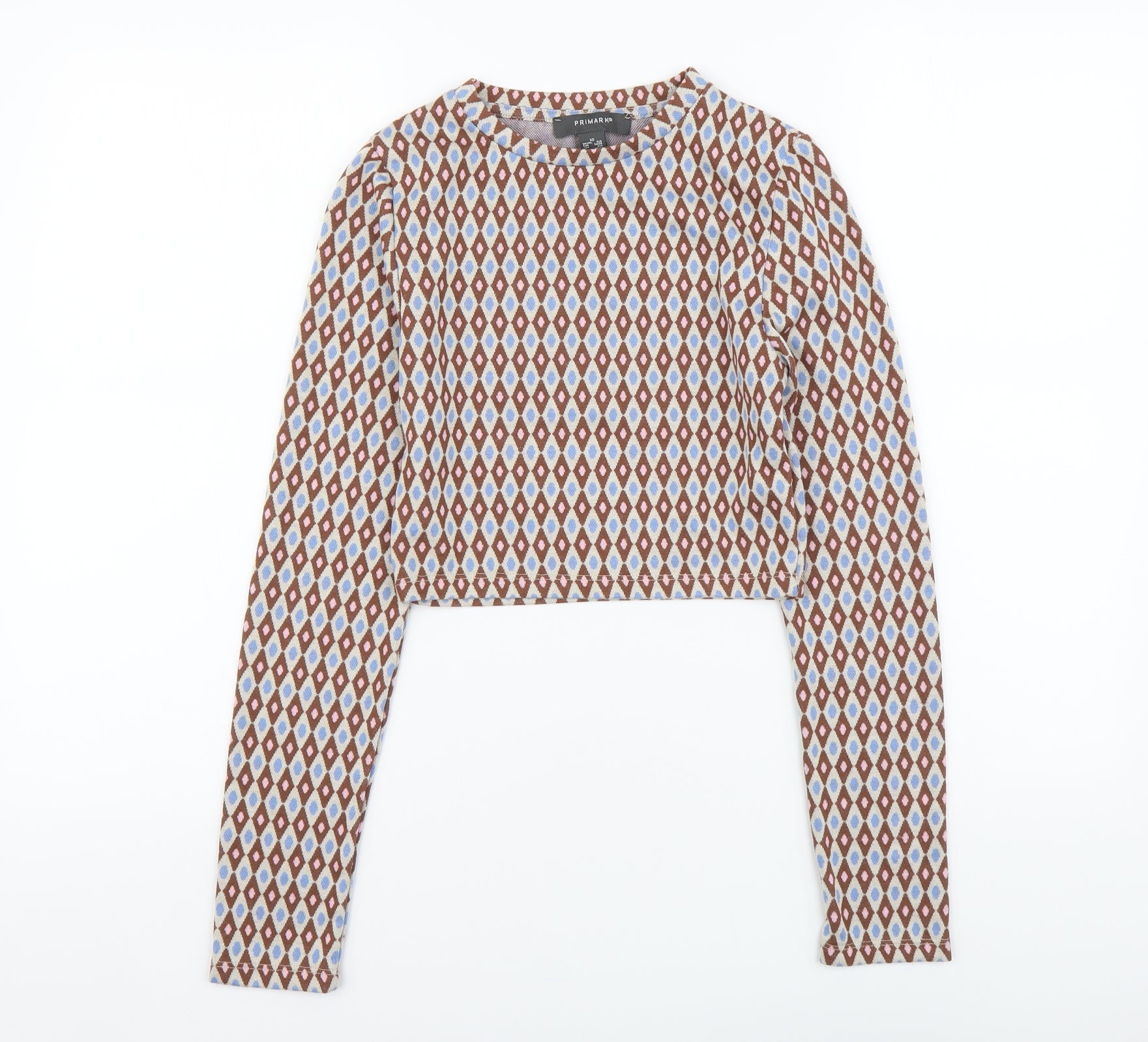 Primark Womens Multicoloured Geometric Polyester Cropped T-Shirt Size XS Round Neck