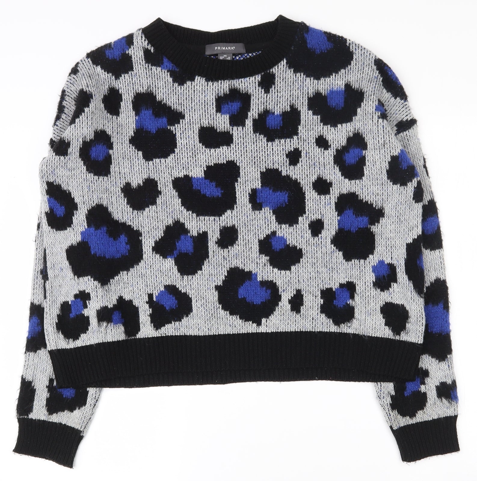 Primark Womens Multicoloured Round Neck Animal Print Acrylic Pullover Jumper Size 4