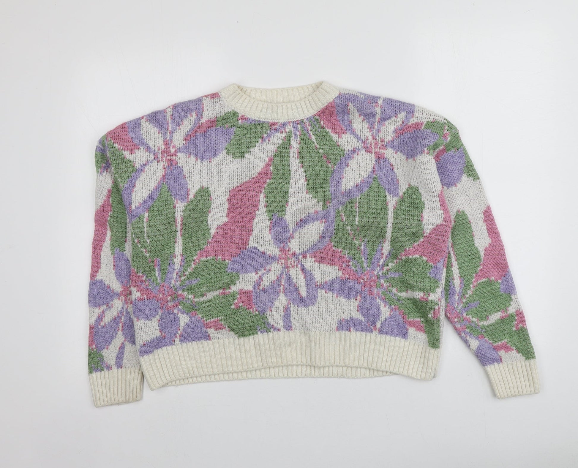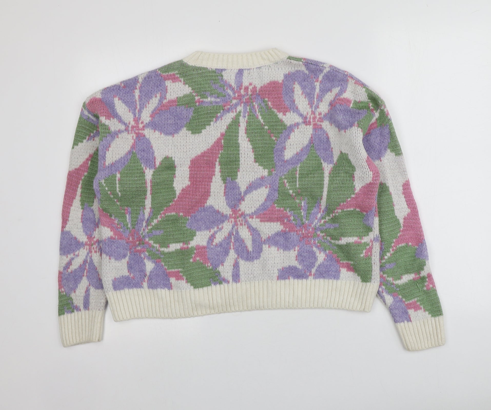 Primark Womens Multicoloured Round Neck Floral Acrylic Pullover Jumper Size XS