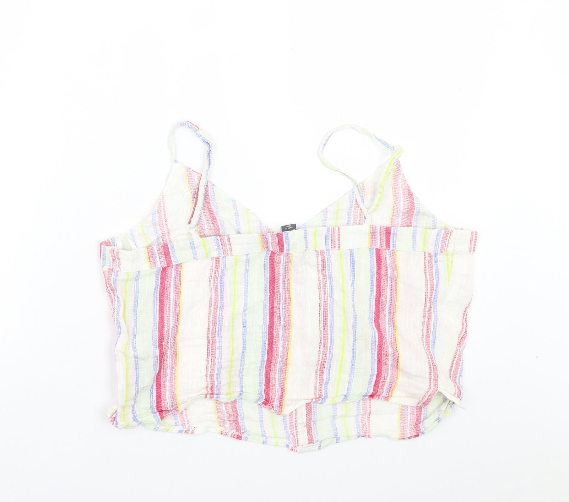 Primark Womens Multicoloured Striped Cotton Cropped Tank Size 16 V-Neck