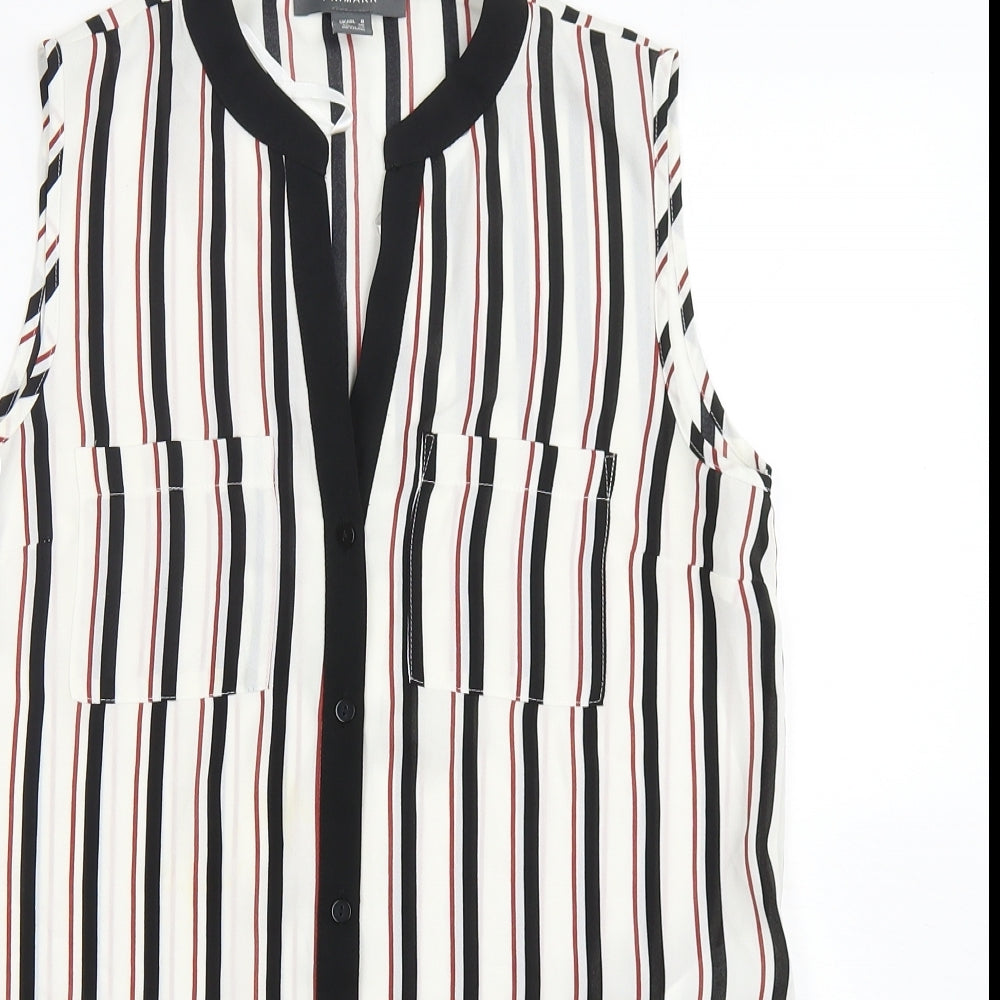 Primark Womens Multicoloured Striped Polyester Basic Button-Up Size 8 V-Neck