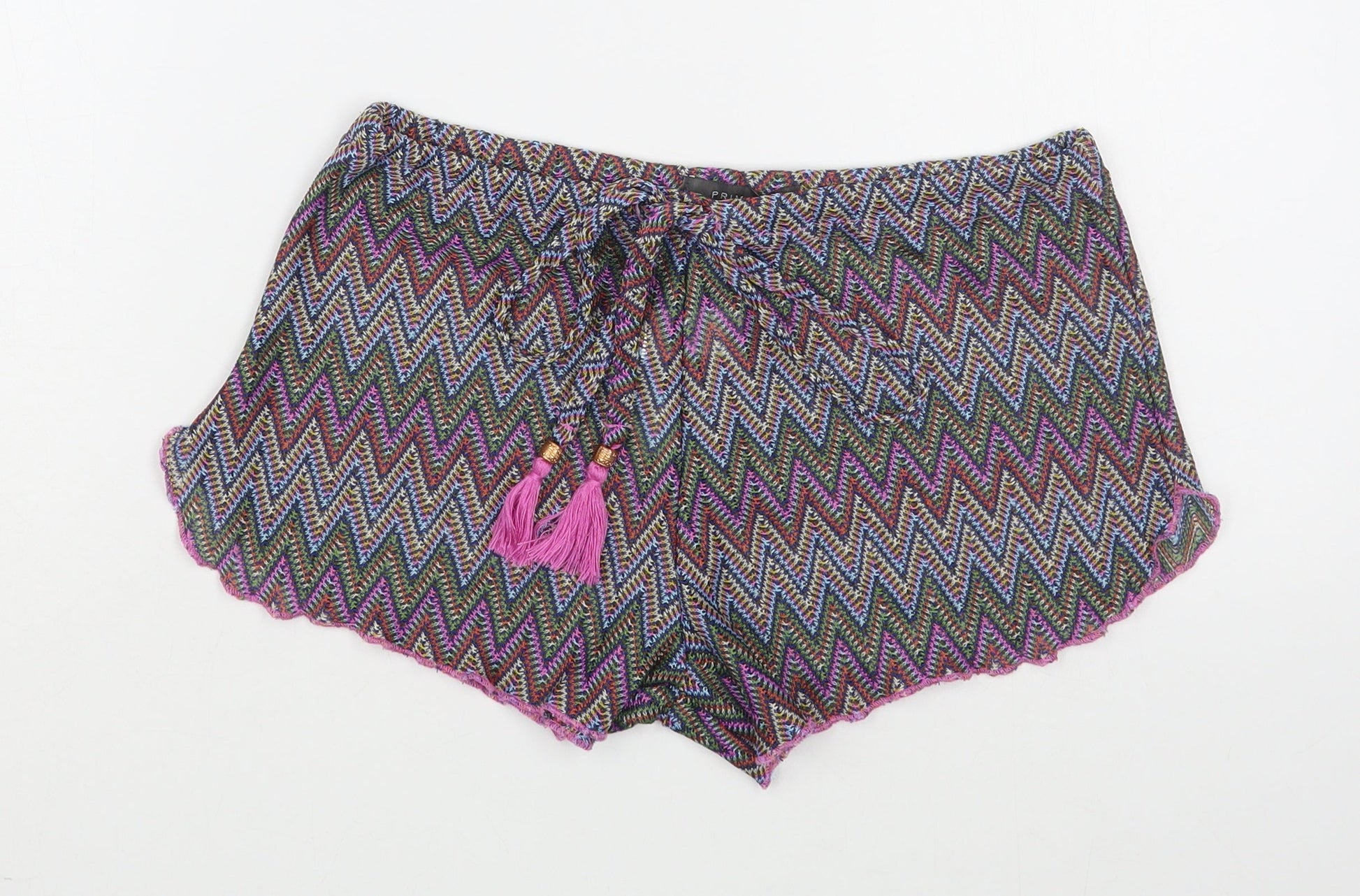 Primark Womens Multicoloured Striped Polyester Hot Pants Shorts Size S Regular Tie - Swim Cover Up