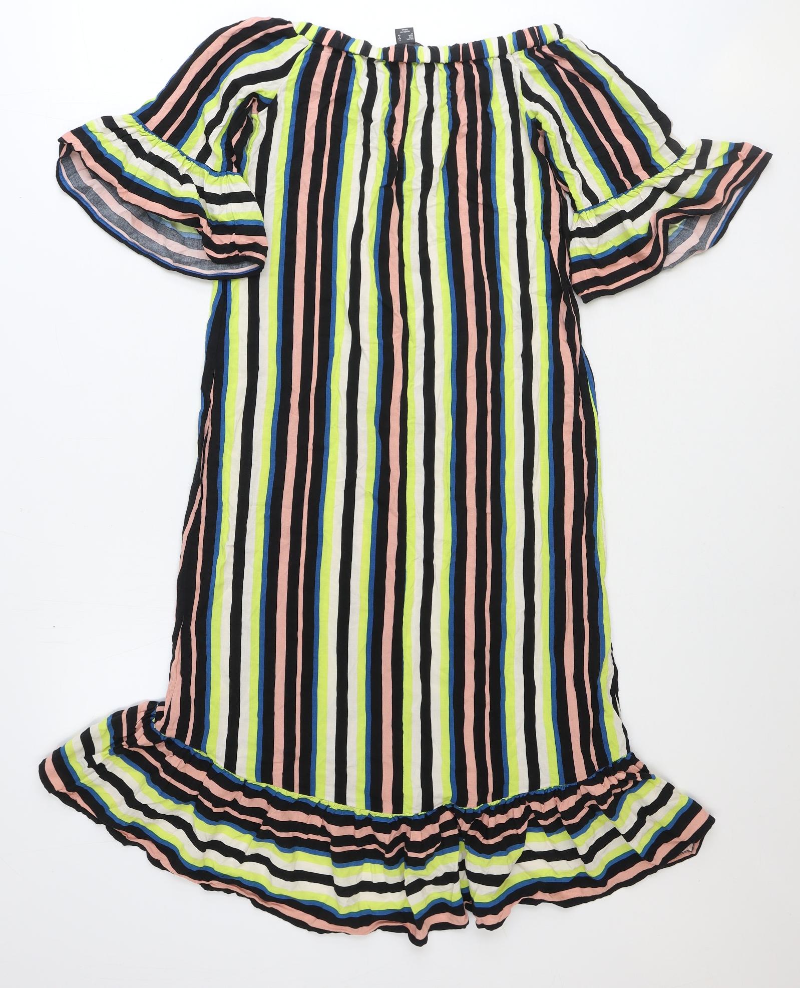 Primark Womens Multicoloured Striped Polyester Shift Size 6 Off the Shoulder Pullover - Bardot
