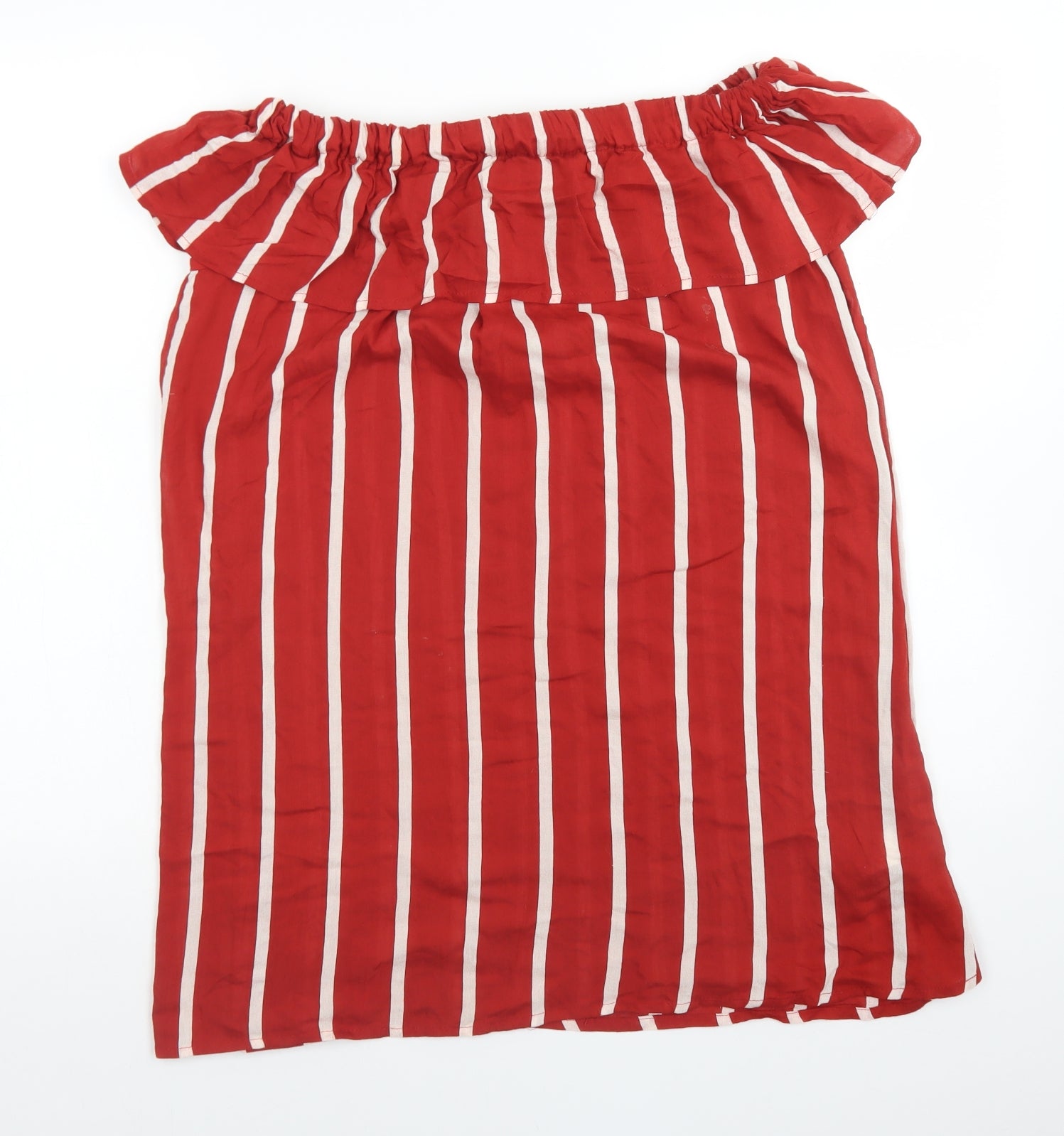 Primark Womens Multicoloured Striped Viscose Basic T-Shirt Size 8 Off the Shoulder