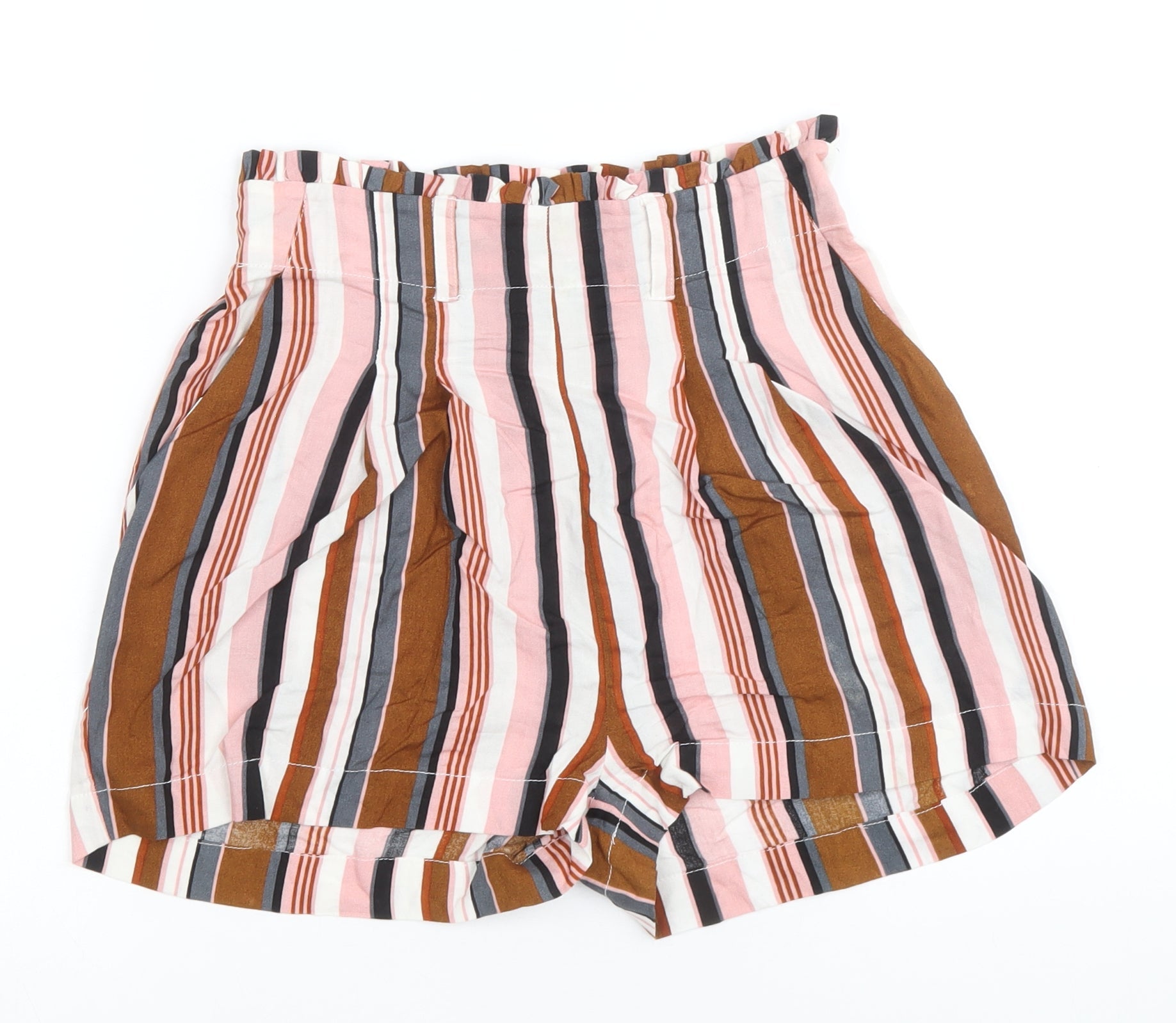 Primark Womens Multicoloured Striped Viscose Paperbag Shorts Size 4 Regular Pull On