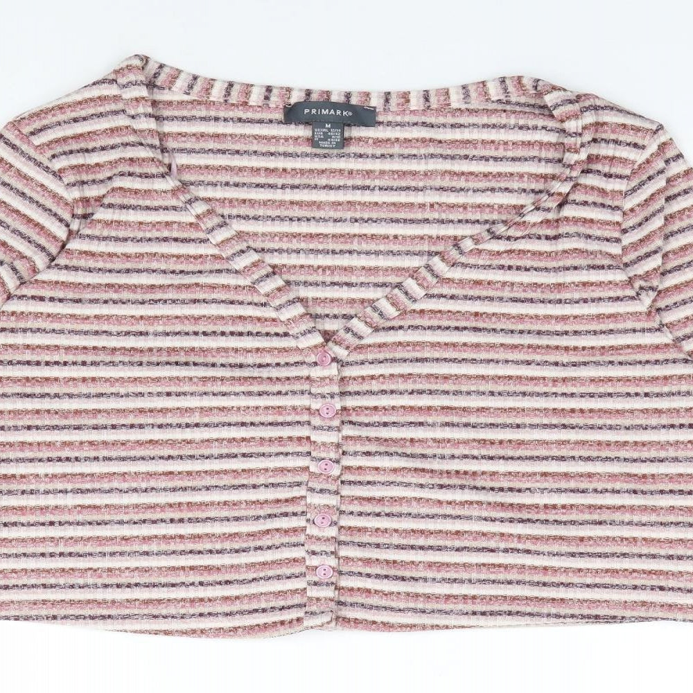 Primark Womens Multicoloured V-Neck Striped Polyester Cardigan Jumper Size M