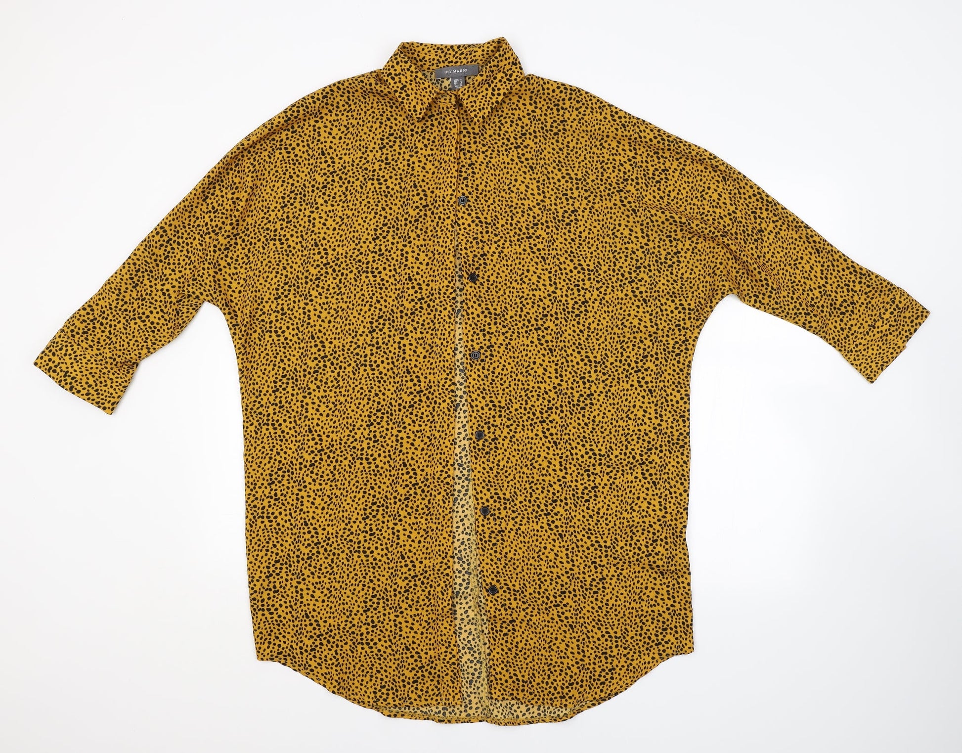 Primark Womens Orange Animal Print Basic Button-Up Size 8