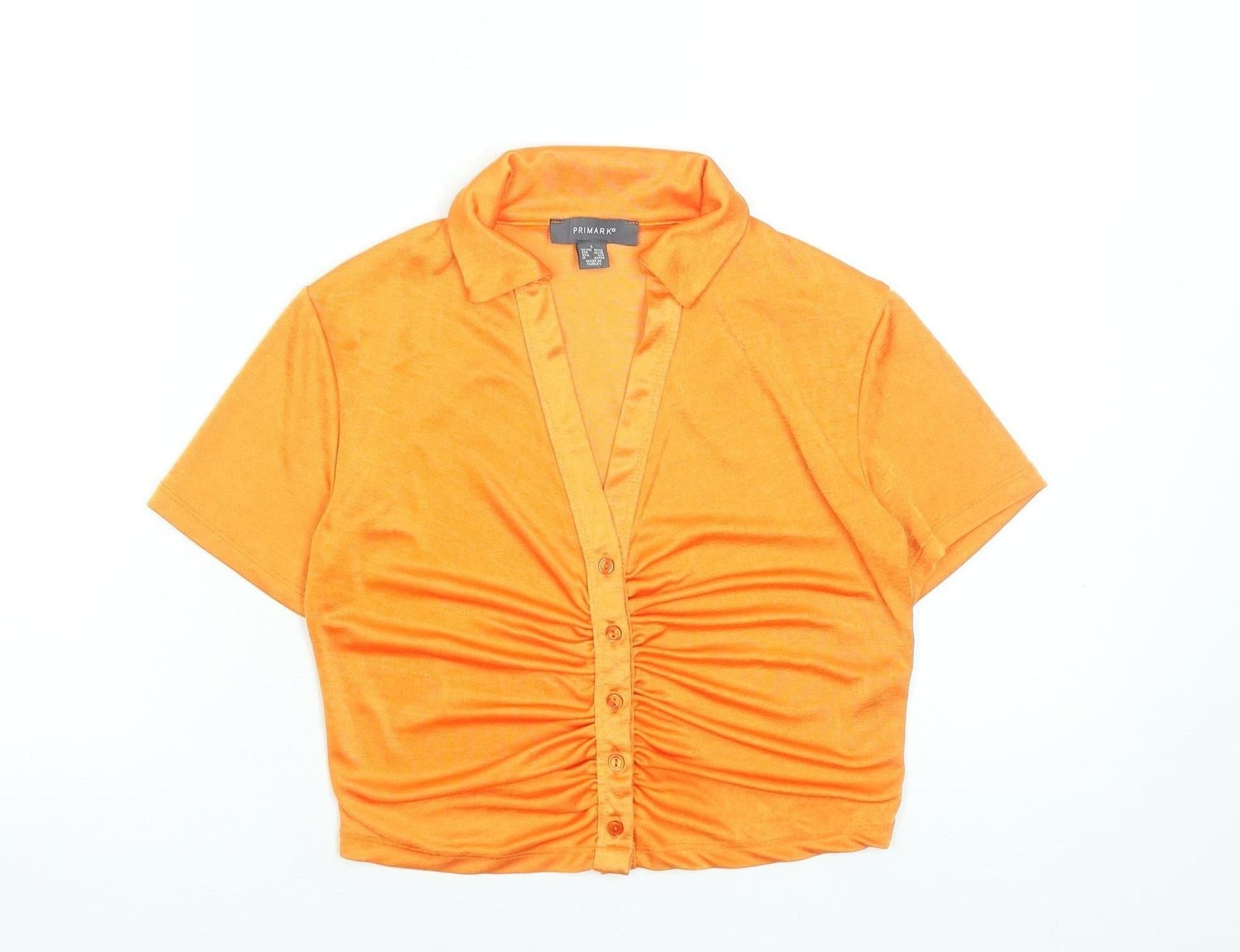Primark Women's Orange Cropped Button-Up Collared Shirt Size 10