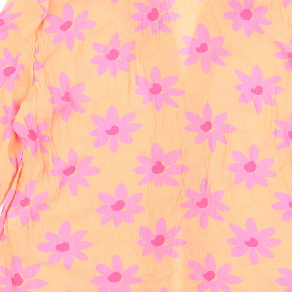 Primark Womens Orange Floral Polyester Basic Button-Up Size 8 V-Neck