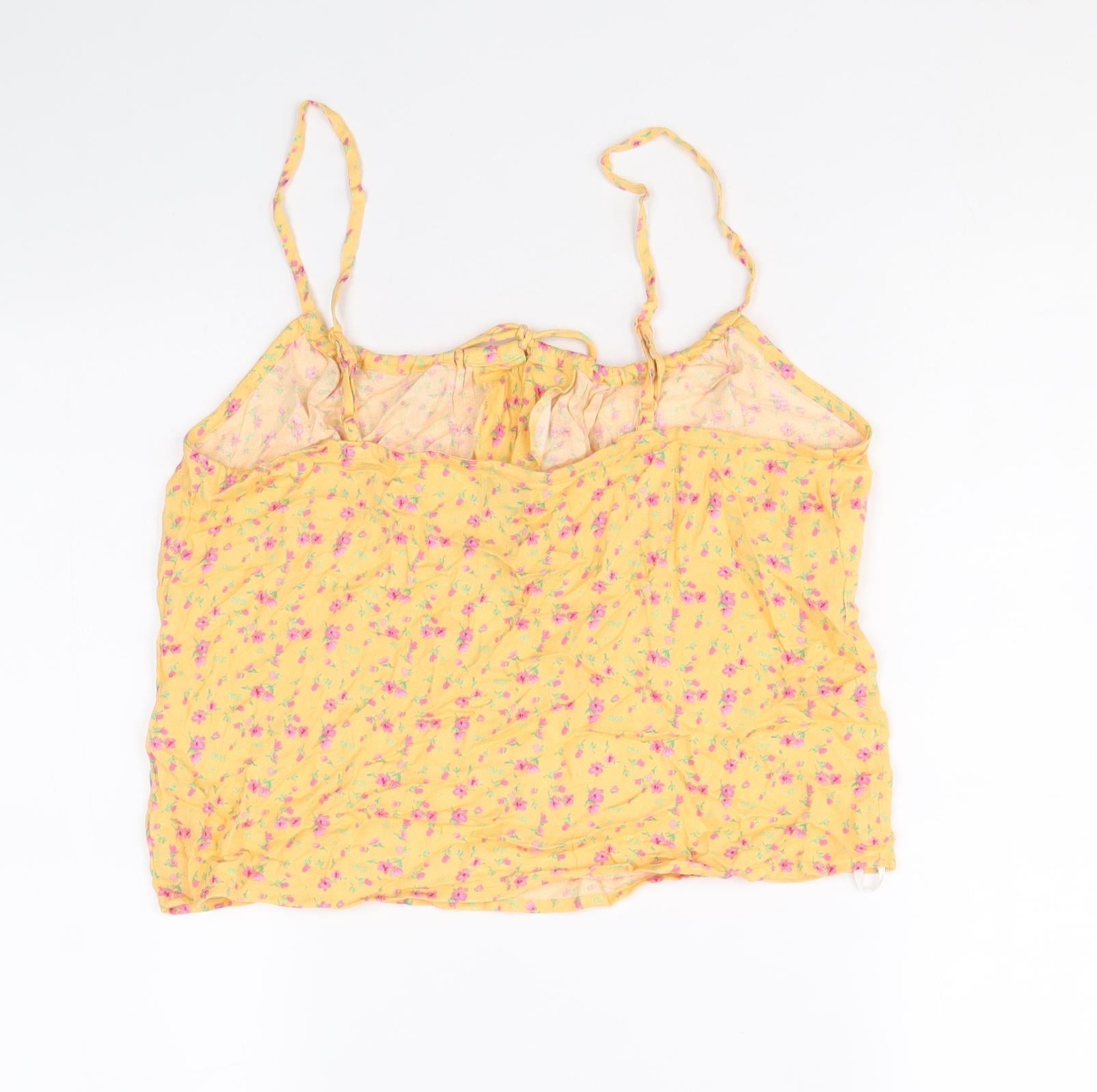 Primark Womens Orange Floral Viscose Cropped Tank Size 14 Round Neck