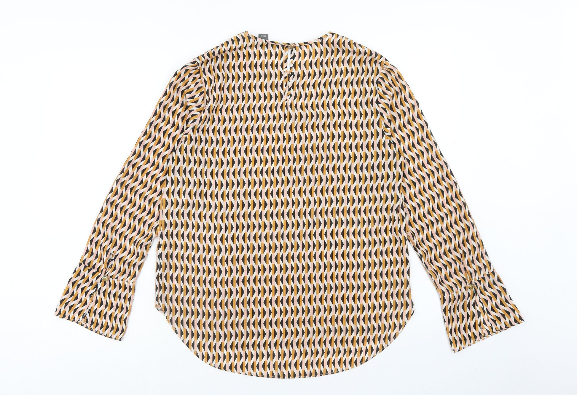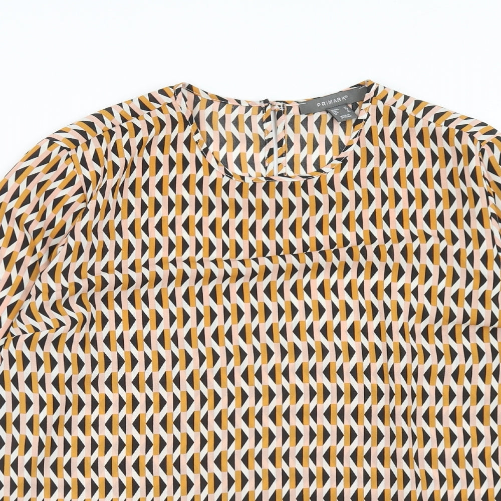 Primark Womens Orange Geometric Polyester Basic Blouse Size 10 Round Neck