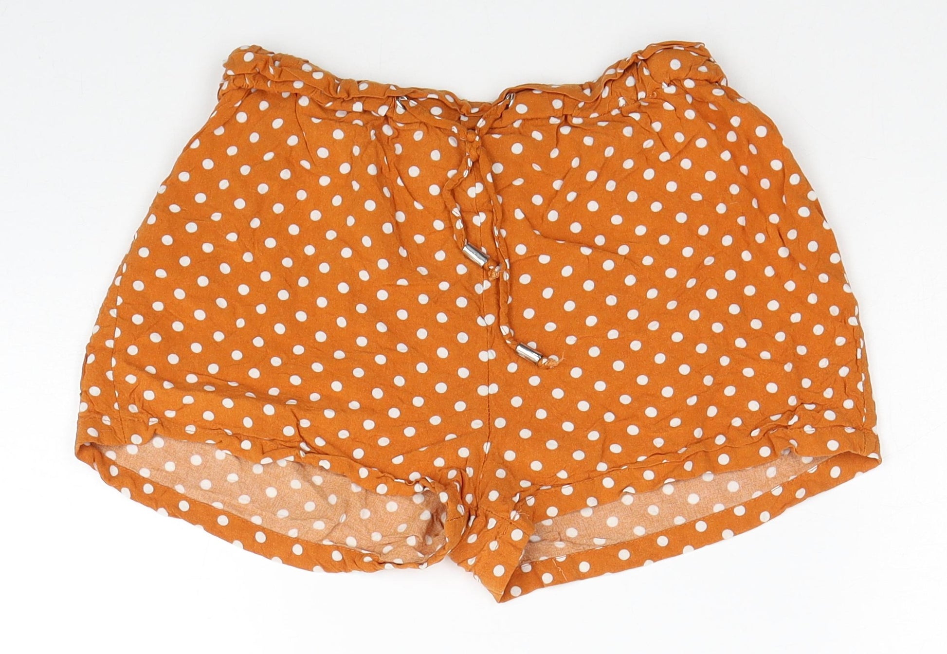 Primark Womens Orange Polka Dot Viscose Hot Pants Shorts Size 8 Regular Pull On