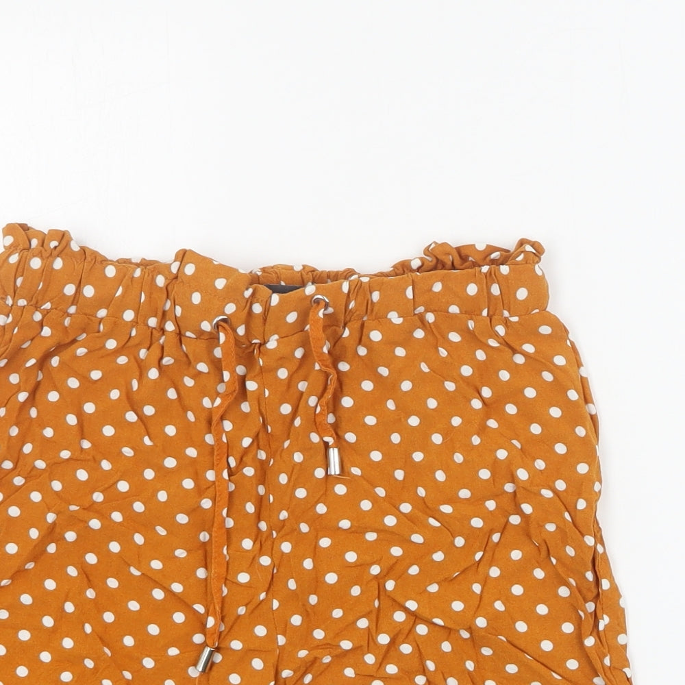 Primark Womens Orange Polka Dot Viscose Paperbag Shorts Size 6 Regular Drawstring