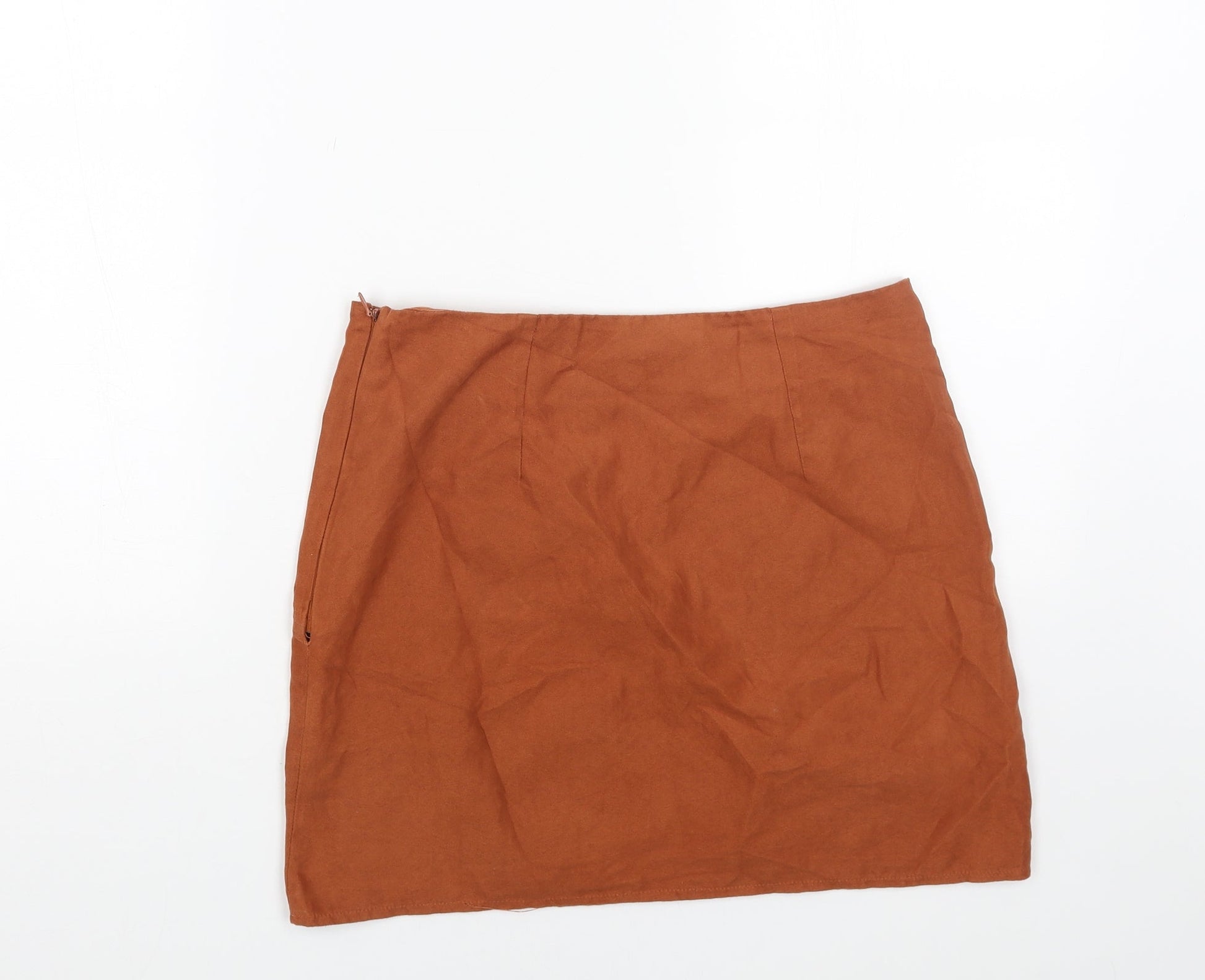 Primark Womens Orange Polyester Mini Skirt Size 10 Zip