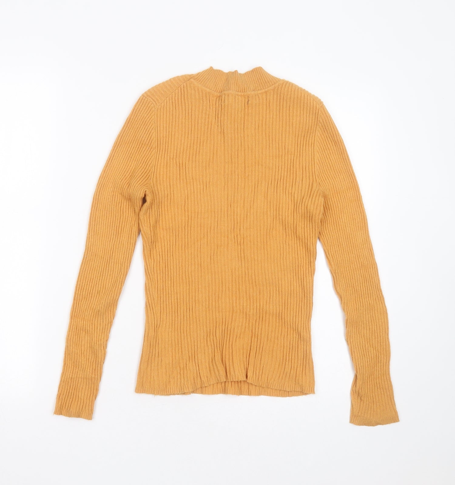 Primark Womens Orange Round Neck Striped Viscose Pullover Jumper Size S