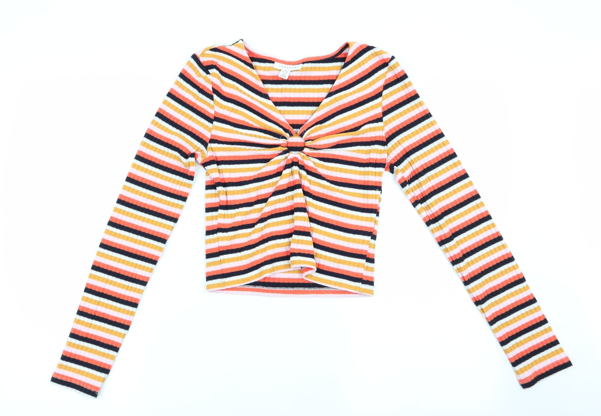 Primark Womens Orange Striped Pullover Jumper Size 8