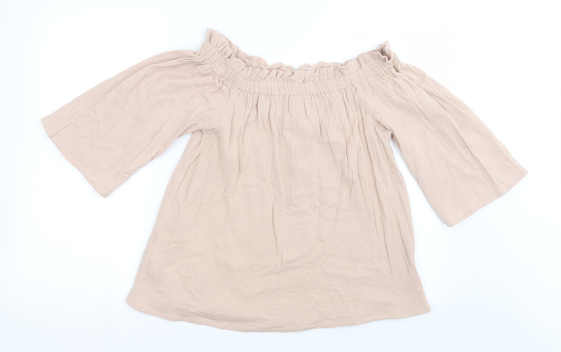 Primark Womens Pink Cotton Basic Blouse Size 12 Off the Shoulder