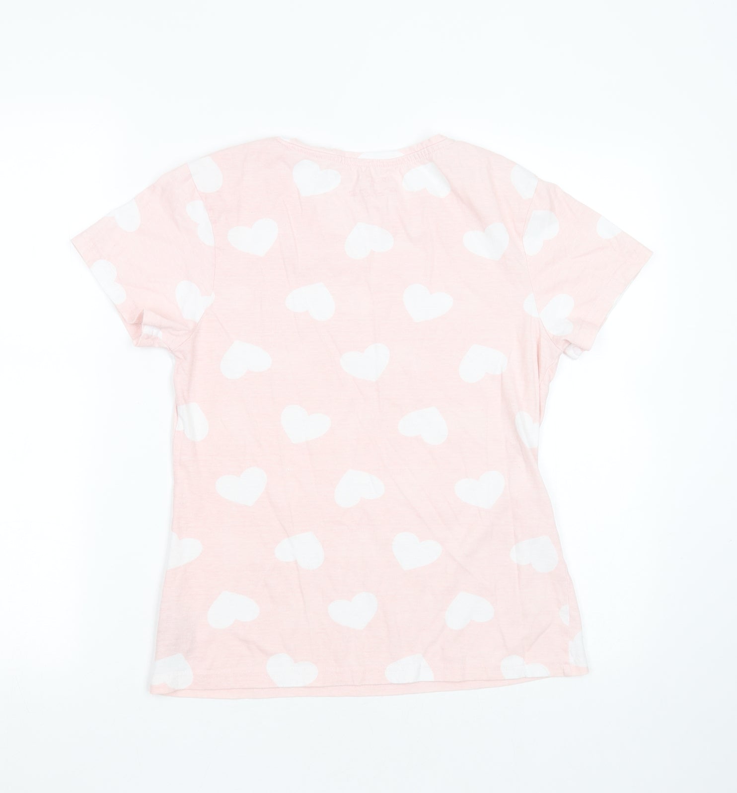 Primark Womens Pink Cotton Basic T-Shirt Size 6 Round Neck - Heart pattern