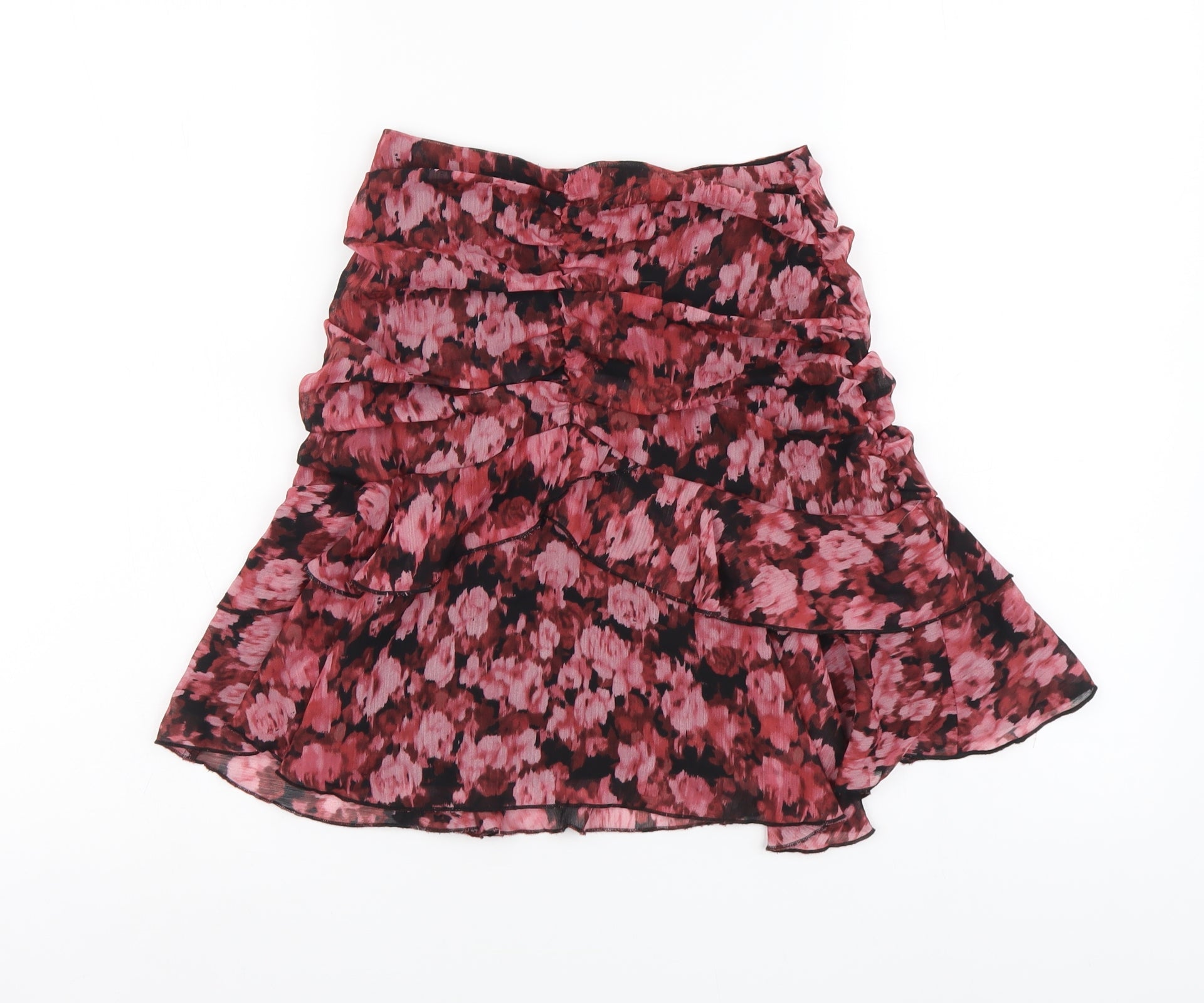 Primark Womens Pink Floral Polyester A-Line Skirt Size 4 Zip