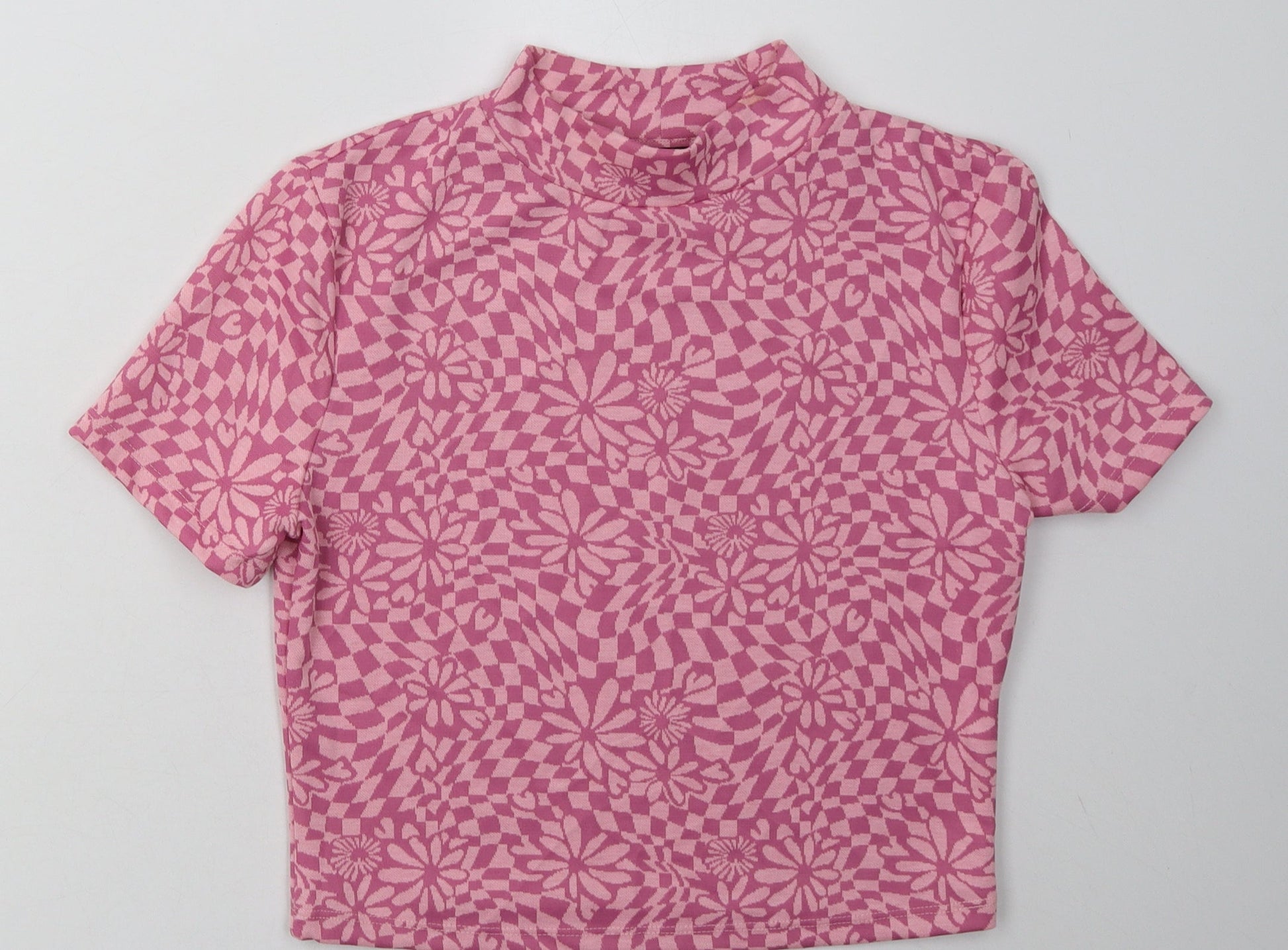 Primark Womens Pink Floral Viscose Cropped T-Shirt Size M Crew Neck
