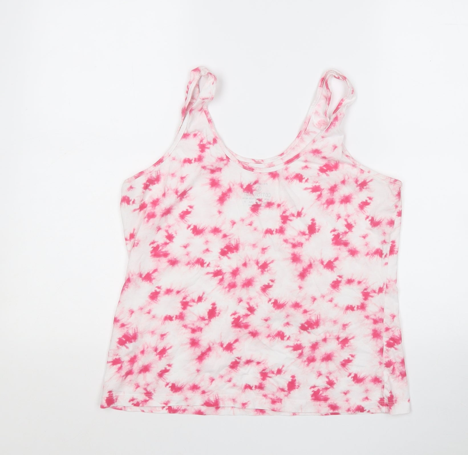 Primark Womens Pink Geometric Cotton Basic Tank Size 16 Round Neck