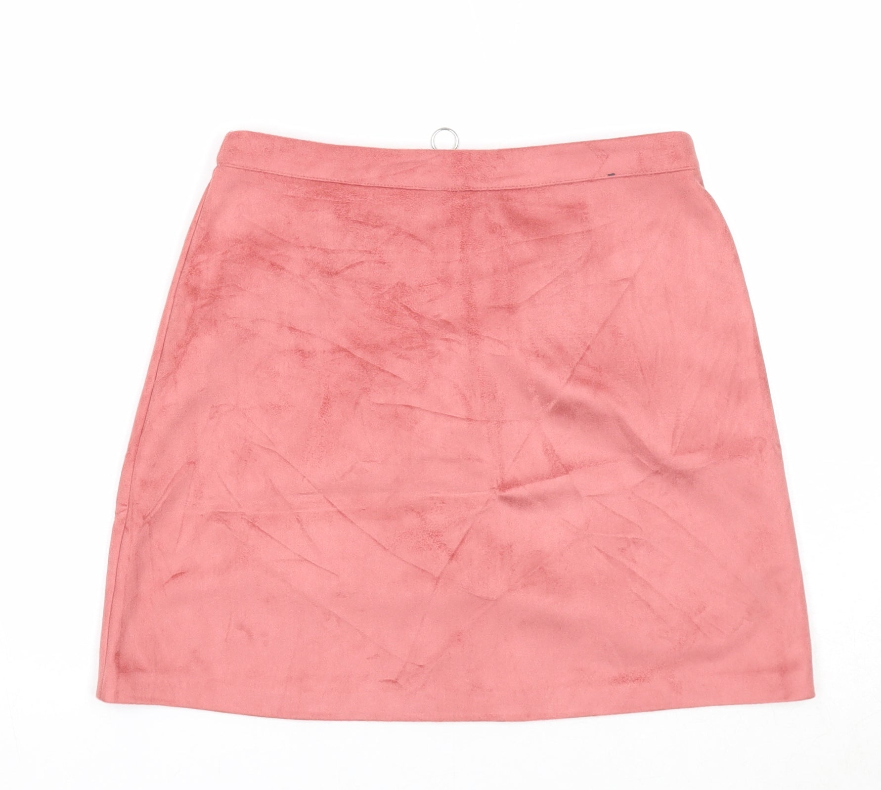 Primark Womens Pink Polyester A-Line Skirt Size 8 Zip