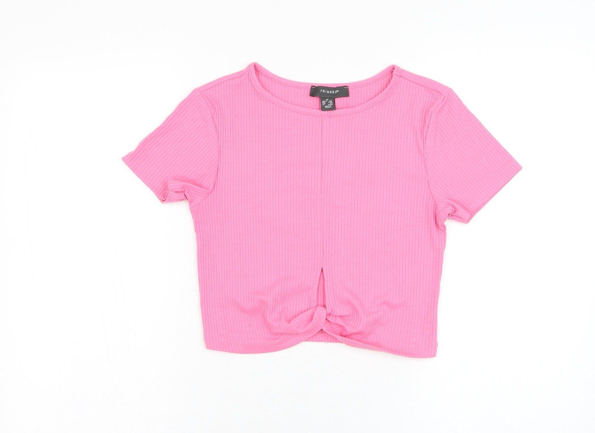 Primark Womens Pink Polyester Cropped T-Shirt Size 6 Round Neck