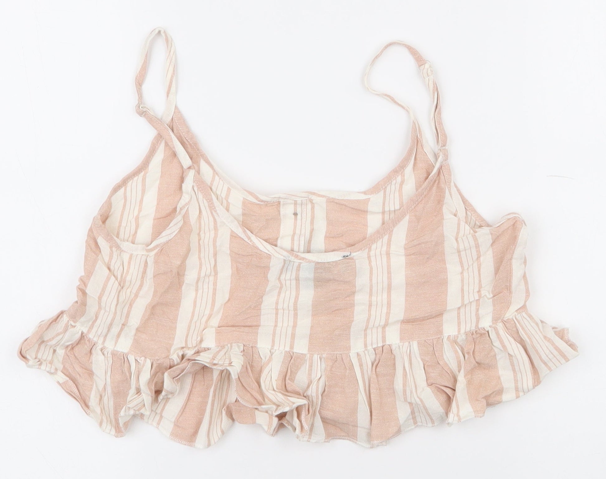 Primark Womens Pink Striped Polyester Cropped T-Shirt Size 6 Scoop Neck