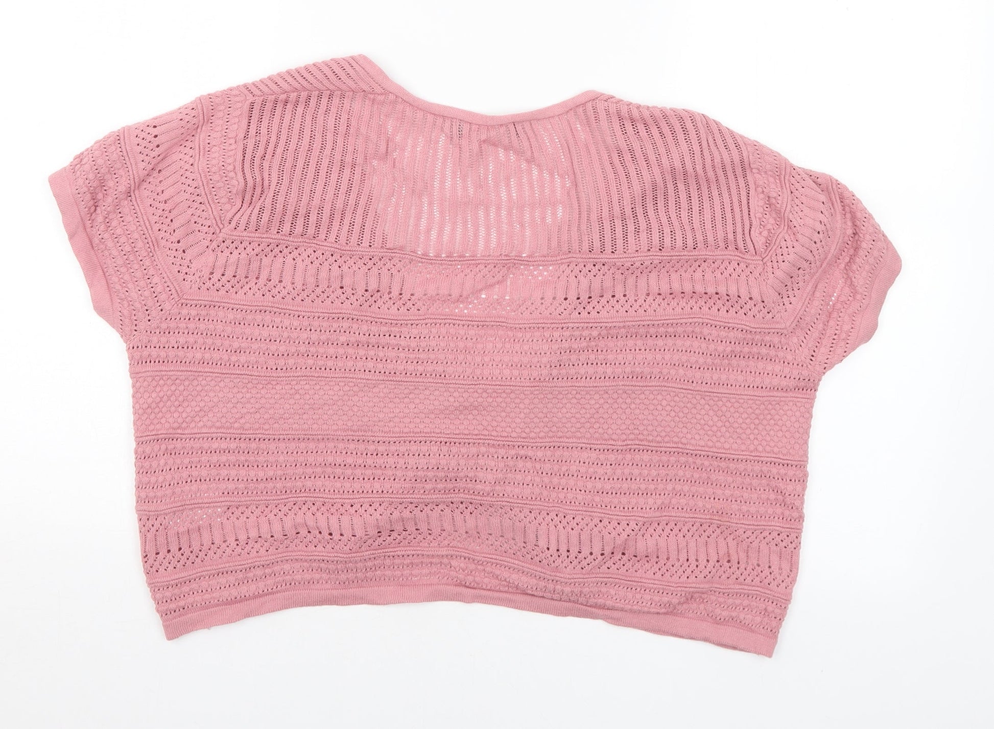 Primark Womens Pink V-Neck Cotton Cardigan Jumper Size 12 - 12-14